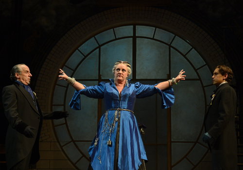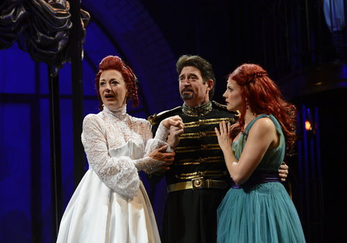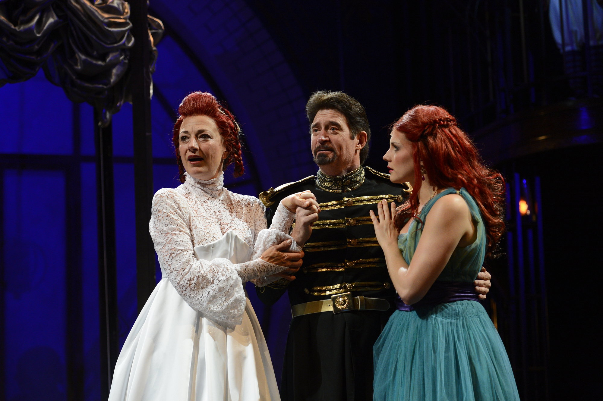 The royal family, actors Lise Bruneau (left, as Hermione), David Anthony Smith (center, as Leontes) and Kimbre Lancaster (right, as Perdita) takes center stage in Great Lakes Theater's season opening production of William Shakespeare's romantic epic "The Winter's Tale" at the Hanna Theatre, PlayhouseSquare. The production will run in rotating repertory with a 60s-inspired, music-infused adaptation of Moliere's classic comedy "The Imaginary Invalid" through November 4, 2012. (Photo by Roger Mastroianni)