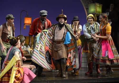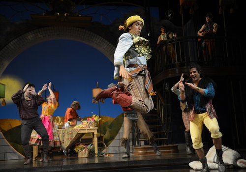 Tom Ford (as Autolycus) takes center stage and shows his “wares” in Great Lakes Theater's season opening production of William Shakespeare's romantic epic "The Winter's Tale" at the Hanna Theatre, PlayhouseSquare. The production will run in rotating repertory with a 60s-inspired, music-infused adaptation of Moliere's classic comedy "The Imaginary Invalid" through November 4, 2012. (Photo by Roger Mastroianni)