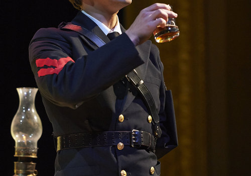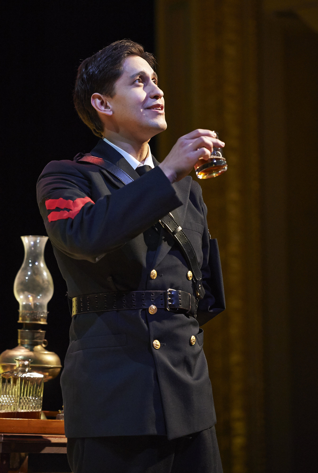 Actor Juan Rivera Lebron (as Don John) sips a drink in the shadows during the Great Lakes Theater production of Shakespeare's sublime battle of wits and wills "Much Ado About Nothing" at the Hanna Theatre, PlayhouseSquare which runs through April 14. (Photo by Roger Mastroianni)