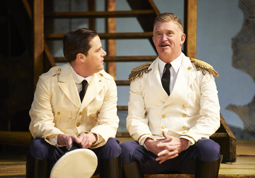 Actor Neil Brookshire (left, as Claudio) and David Anthony Smith (right, as Don Pedro) take center stage in the Great Lakes Theater production of Shakespeare's sublime battle of wits and wills "Much Ado About Nothing" at the Hanna Theatre, PlayhouseSquare which runs through April 14. (Photo by Roger Mastroianni)