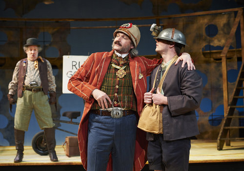 Actor Dougfred Miller (center, as Dogberry) mentors a member of his motley band of watchmen (right, actor, Austin Blunk) as his sidekick, actor M.A. Taylor (left, as Verges) watches on in the Great Lakes Theater production of Shakespeare's sublime battle of wits and wills "Much Ado About Nothing" at the Hanna Theatre, PlayhouseSquare which runs through April 14. (Photo by Roger Mastroianni)