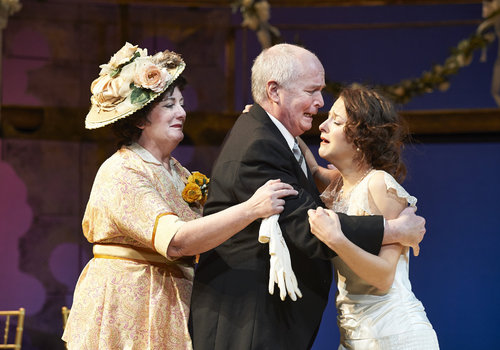 Family feud? Actor Laurie Birmingham (left, as Antonia) and David McCann (center, as Leonato) console their spurned daughter, actor Betsy Mugavero (as Hero), in the Great Lakes Theater production of Shakespeare's sublime battle of wits and wills "Much Ado About Nothing" at the Hanna Theatre, PlayhouseSquare which runs through April 14. (Photo by Roger Mastroianni)