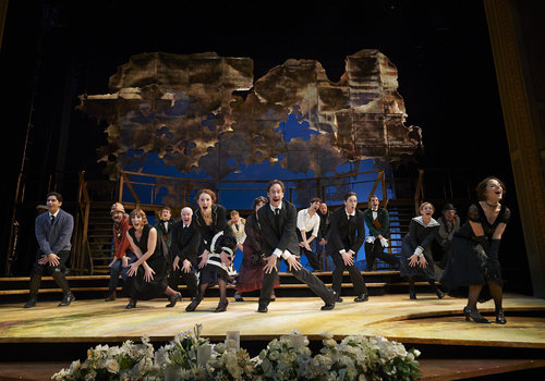 The acting company celebrates during the final moments of the Great Lakes Theater production of Shakespeare's sublime battle of wits and wills "Much Ado About Nothing" at the Hanna Theatre, PlayhouseSquare which runs through April 14. (Photo by Roger Mastroianni)