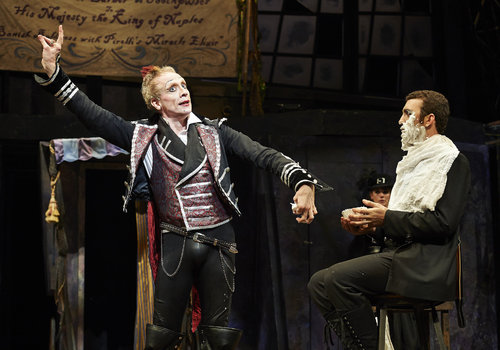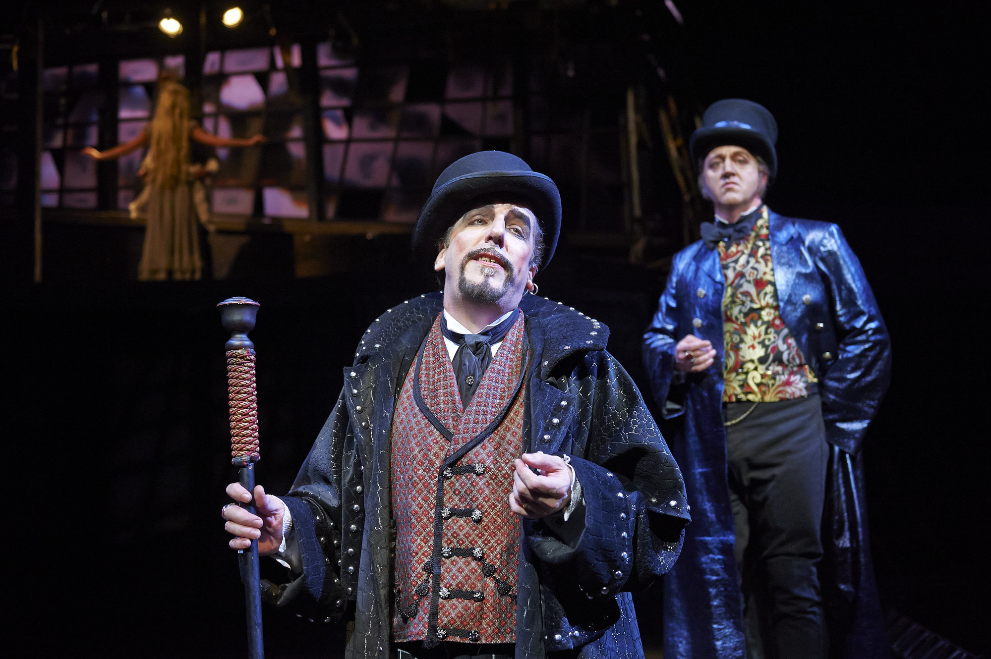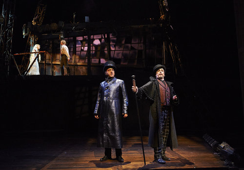 Actors M.A. Taylor (left, as The Beadle) and Darren Matthias (right, as Judge Turpin) take center stage in the Great Lakes Theater production of "Sweeney Todd" at the Hanna Theatre, PlayhouseSquare which runs through November 2. (Photo by Roger Mastroianni)