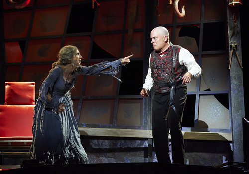 Actors Jodi Dominick (as Beggar Woman) and Tom Ford (as Sweeney Todd) star in the Great Lakes Theater production of "Sweeney Todd" at the Hanna Theatre, PlayhouseSquare which runs through November 2. (Photo by Roger Mastroianni)
