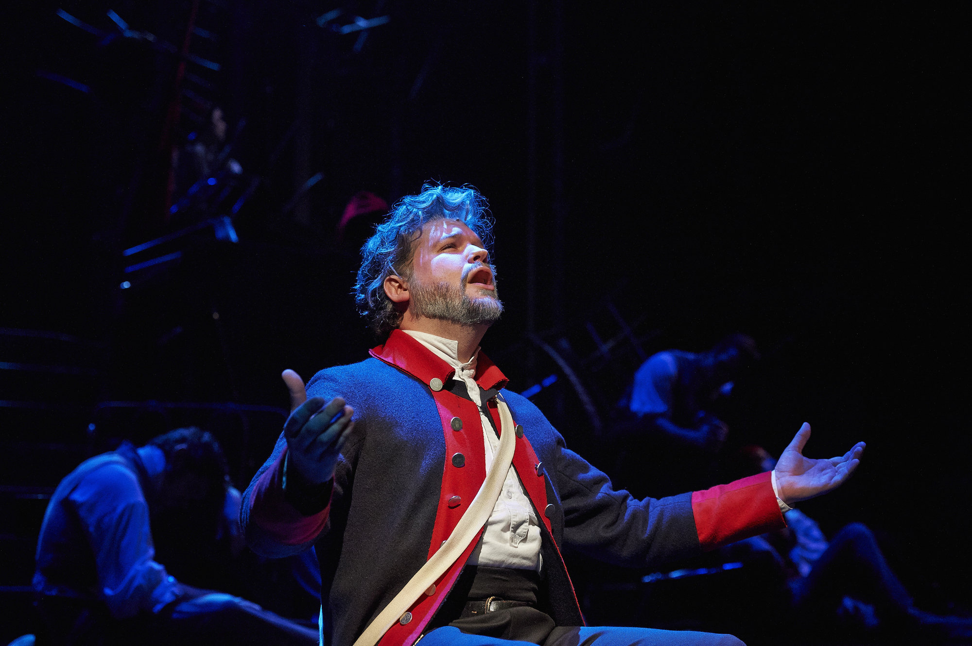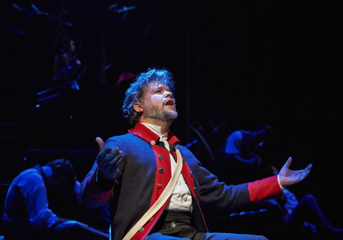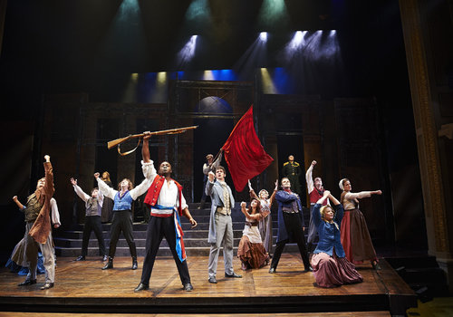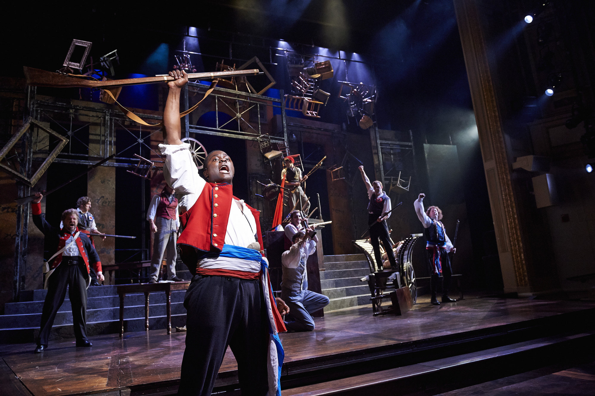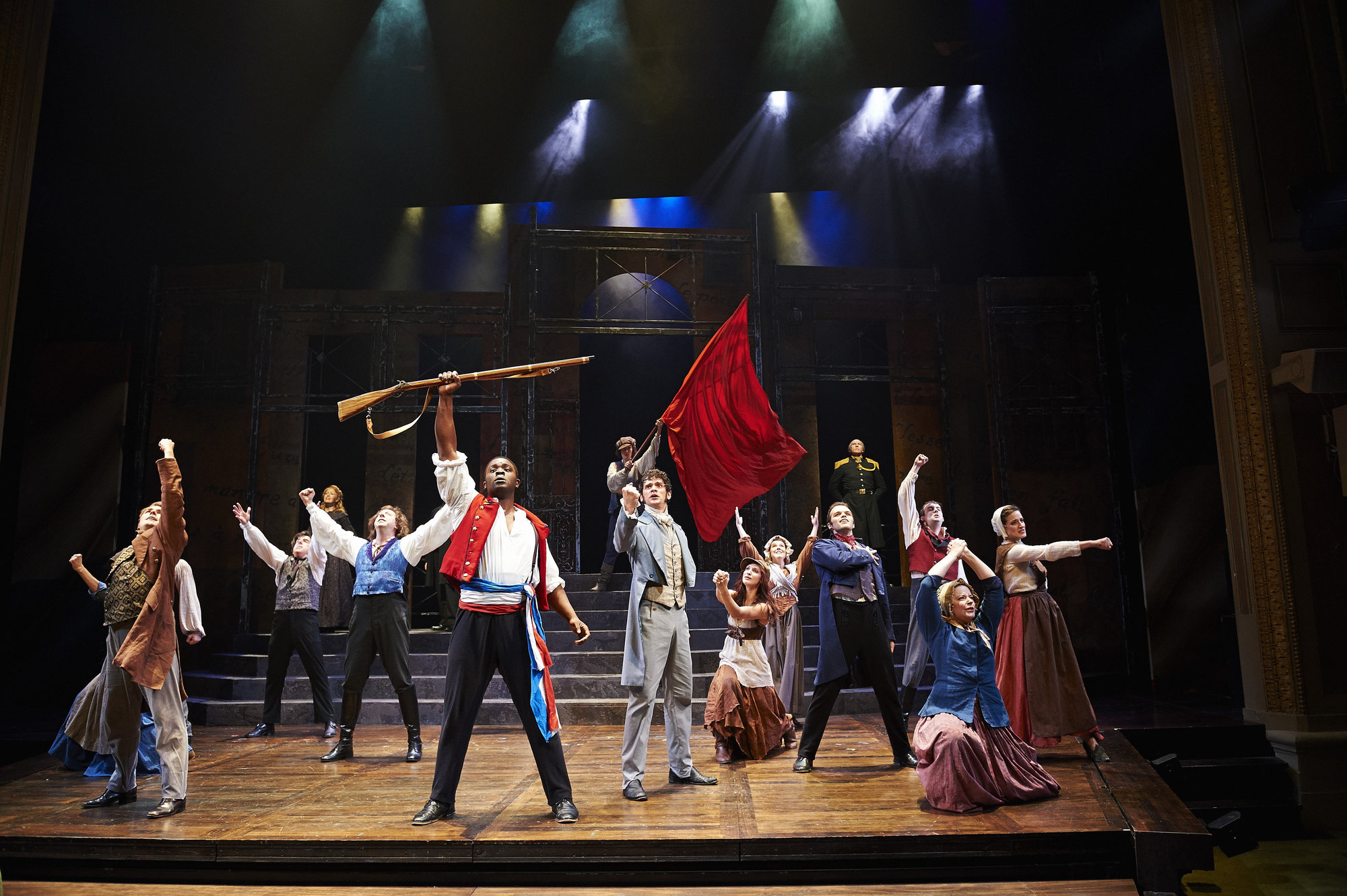 Actor Kyle Jean Baptiste (as Enjolras) leads the revolutionary charge in the Great Lakes Theater production of the Tony Award-winning musical epic LES MISERABLES at the Hanna Theatre, PlayhouseSquare which runs through November 9. (Photo by Roger Mastroianni)