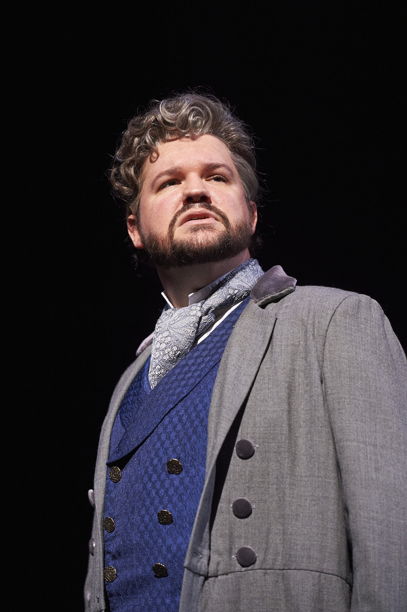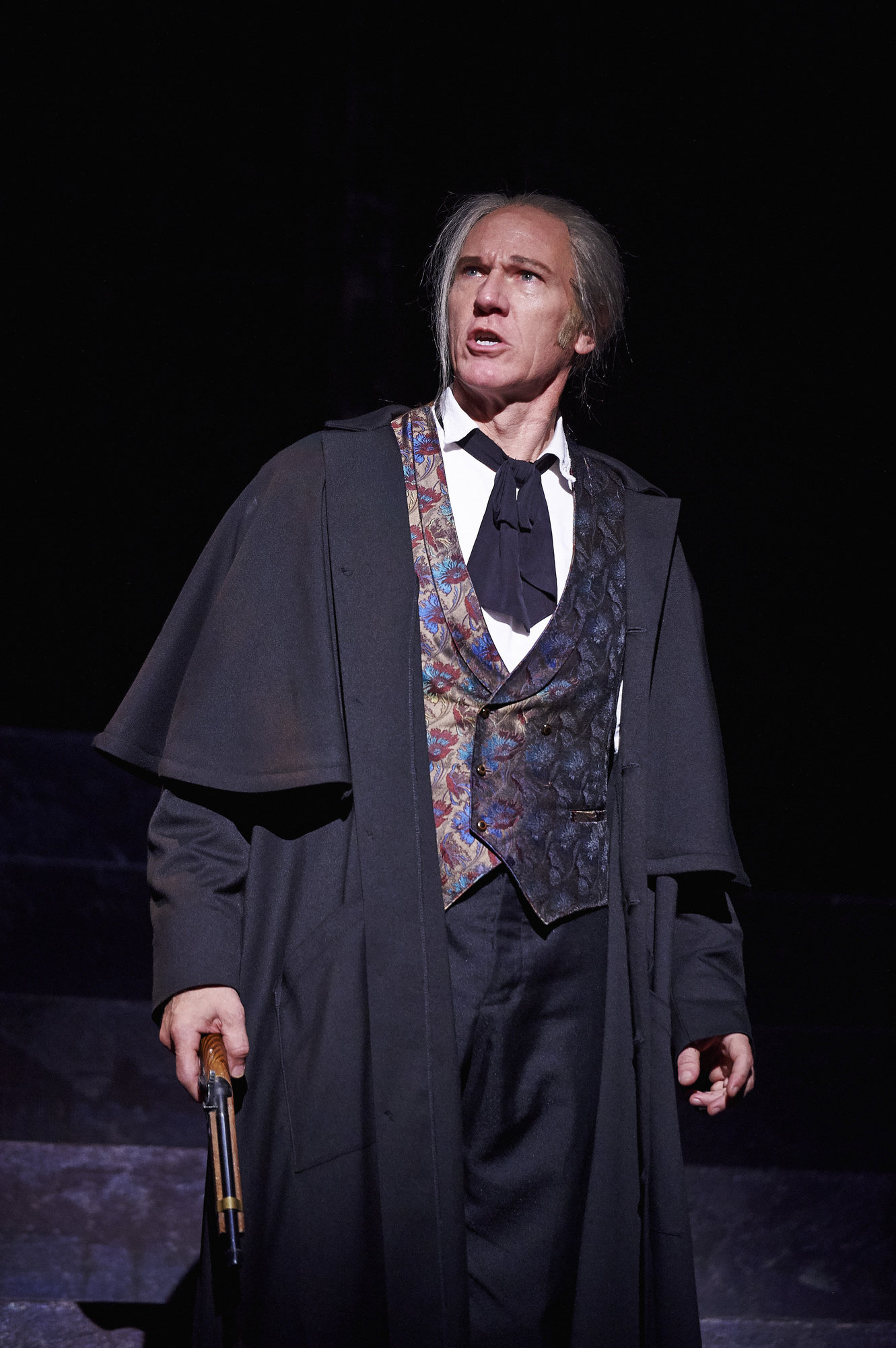 Actor Brian Sutherland (as Javert) takes center stage in the Great Lakes Theater production of the Tony Award-winning musical epic LES MISERABLES at the Hanna Theatre, PlayhouseSquare which runs through November 9. (Photo by Roger Mastroianni)