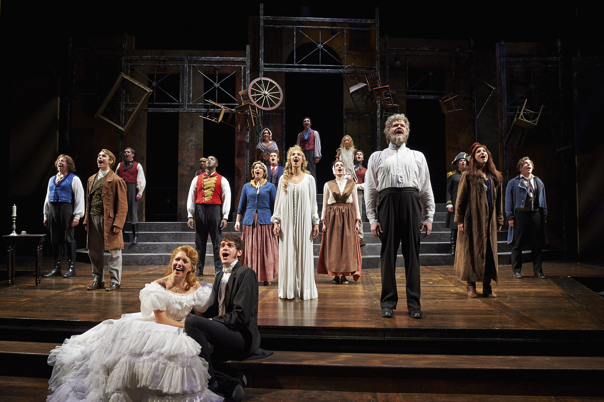 The entire artistic company takes the stage to deliver a stirring finale in the Great Lakes Theater production of the Tony Award-winning musical epic LES MISERABLES at the Hanna Theatre, PlayhouseSquare which runs through November 9. (Photo by Roger Mastroianni)