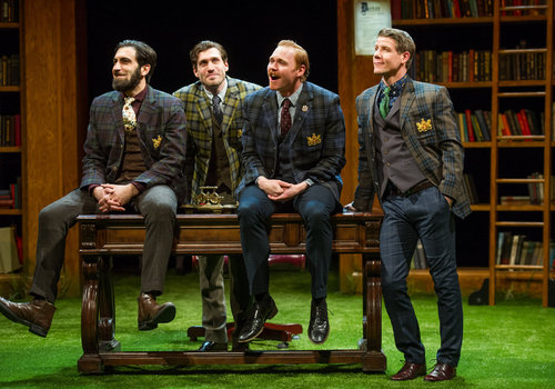 Actors (from left to right) Christopher Tocco (as Berowne), Nick Steen (as Dumaine), Jonathan Dyrud (as Ferdinand) and Jeb Burris (as Longaville) take center stage in the Great Lakes Theater production of William Shakespeare's classic comedy LOVE'S LABOUR'S LOST at the Hanna Theatre, Playhouse Square which runs through April 24. (Photo by Ken Blaze)