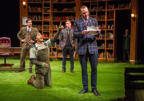 Actors (from left to right) Nick Steen (as Dumaine), Juan Rivera Lebron (as Costard), Jeb Burris (as Longaville) and Jonathan Dyrud (as Ferdinand) take center stage in the Great Lakes Theater production of William Shakespeare's classic comedy LOVE'S LABOUR'S LOST at the Hanna Theatre, Playhouse Square which runs through April 24. (Photo by Ken Blaze)