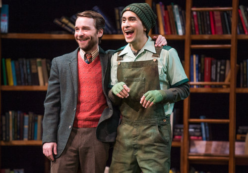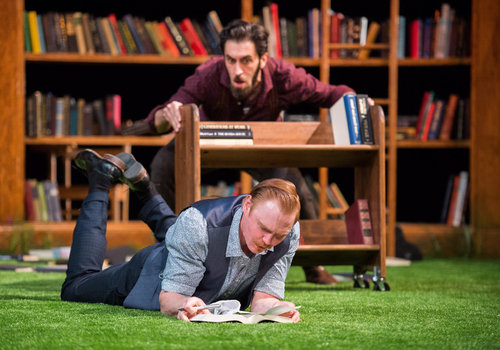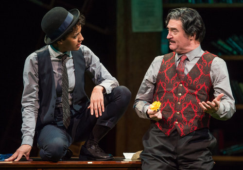 Actors Chris Klopatek (left, as Boyet) and Juan Rivera Lebron (right, as Costard) share the spotlight in the Great Lakes Theater production of William Shakespeare's classic comedy LOVE'S LABOUR'S LOST at the Hanna Theatre, Playhouse Square which runs through April 24. (Photo by Ken Blaze)