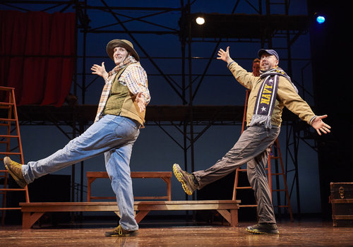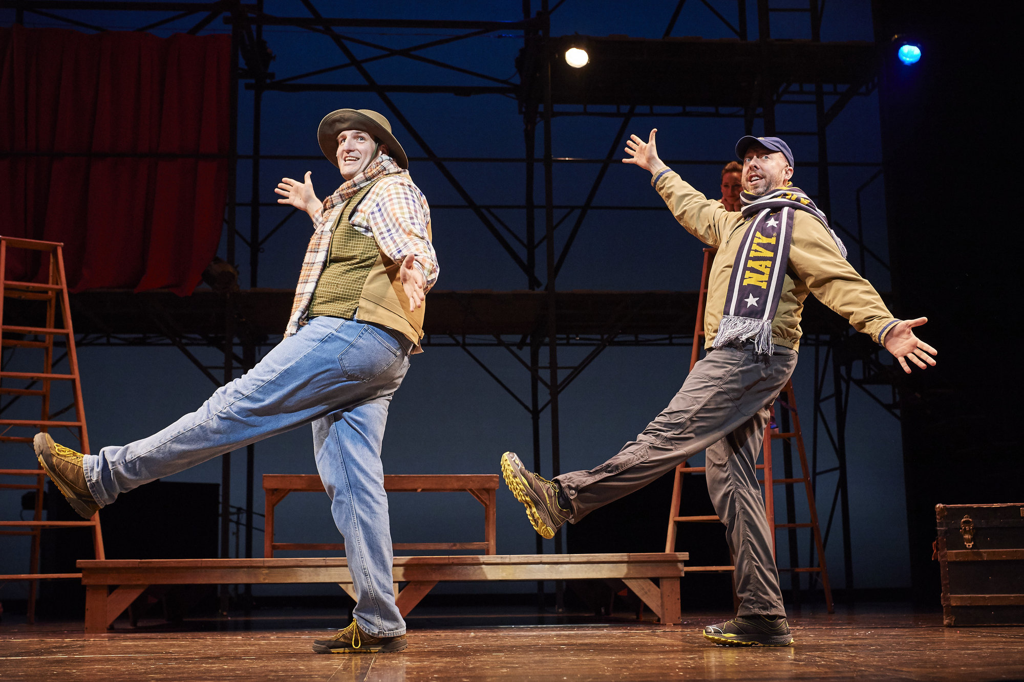 Mortimer (actor, Jeffrey C. Hawkins, left) and Henry (actor, Aled Davies, right) share a comic moment in the Great Lakes Theater production of THE FANTASTICKS at the Hanna Theatre, Playhouse Square which runs through May 29. (Photo by Roger Mastroianni)