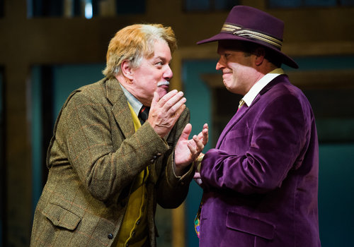 Sir Toby Belch (actor, Aled Davies, left) and Sir Andrew Aguecheek (actor, Tom Ford, right) share a laugh in the Great Lakes Theater production of TWELFTH NIGHT at the Hanna Theatre, Playhouse Square which runs through October 30. (Photo by Ken Blaze)