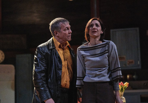 Susy Hendrix (actor, Jodi Dominick) and Harry Roat (actor, Arthur Hanket) in the Great Lakes Theater production of WAIT UNTIL DARK at the Hanna Theatre, Playhouse Square which runs through March 12 (Photo by Roger Mastroianni)