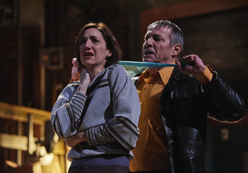 Susy Hendrix (actor, Jodi Dominick) and Mike Talman (actor, Nick Steen) in the Great Lakes Theater production of WAIT UNTIL DARK at the Hanna Theatre, Playhouse Square which runs through March 12 (Photo by Roger Mastroianni)
