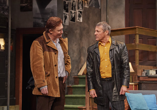 Sgt. Carlino (actor, David Anthony Smith, left) and Harry Roat (actor, Arthur Hanket, right) in the Great Lakes Theater production of WAIT UNTIL DARK at the Hanna Theatre, Playhouse Square which runs through March 12 (Photo by Roger Mastroianni)