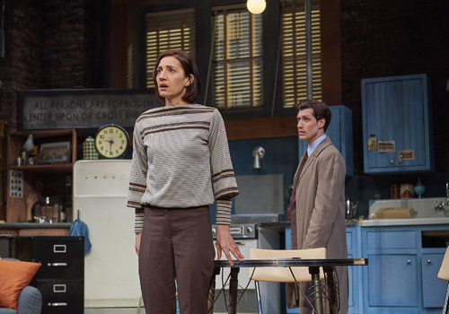 Susy Hendrix (actor, Jodi Dominick, left) and Gloria (actor, Elise Pakiela, right) in the Great Lakes Theater production of WAIT UNTIL DARK at the Hanna Theatre, Playhouse Square which runs through March 12 (Photo by Roger Mastroianni)