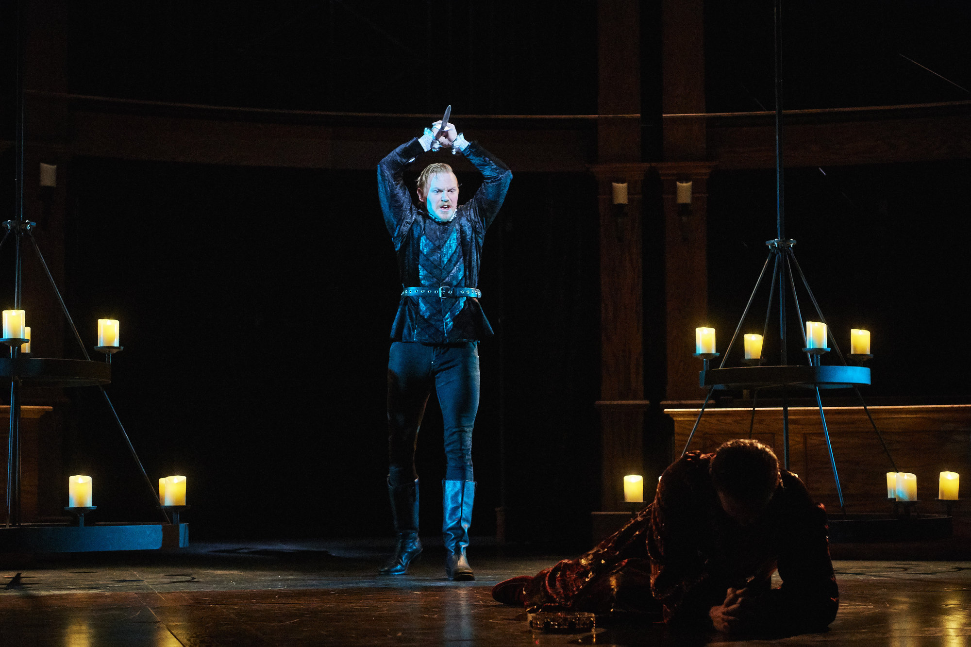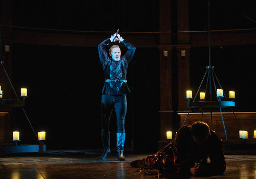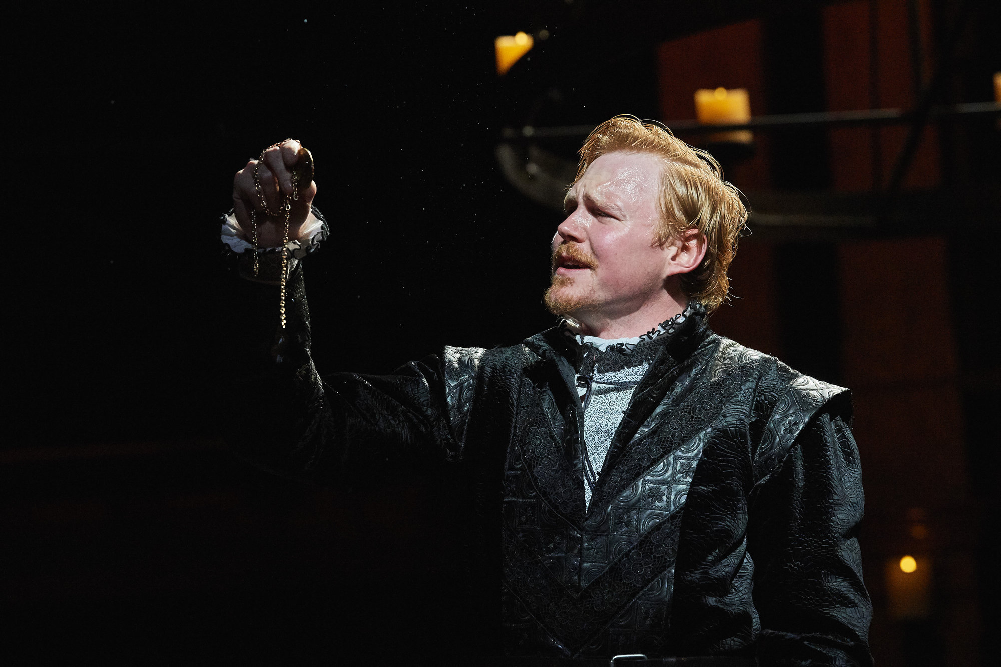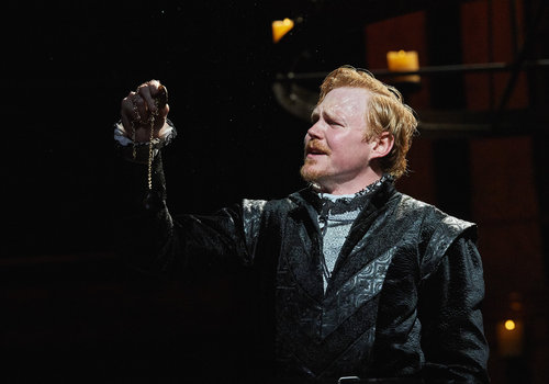 Actor Jonathan Dyrud in the title role of the Great Lakes Theater production of HAMLET at the Hanna Theatre, Playhouse Square which runs through April 15 (Photo by Roger Mastroianni)