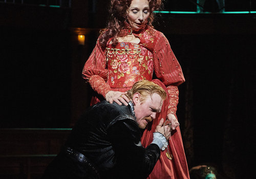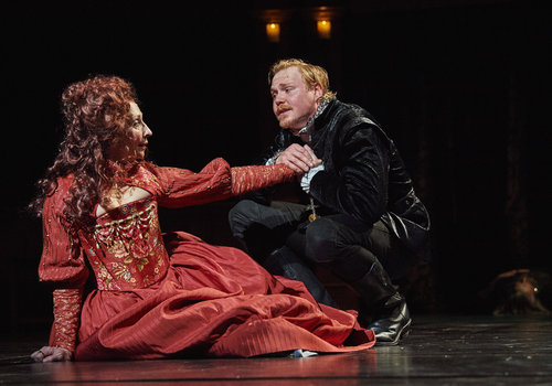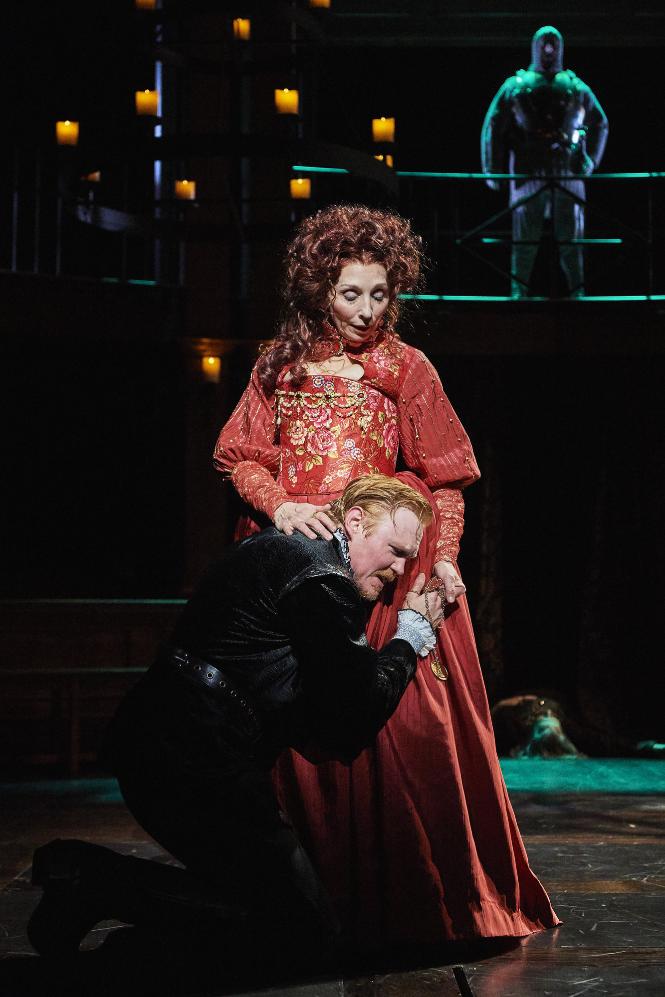 Hamlet (actor, Jonathan Dyrud) and Gertrude (actor, Laura Perrotta) in the Great Lakes Theater production of HAMLET at the Hanna Theatre, Playhouse Square which runs through April 15 (Photo by Roger Mastroianni)