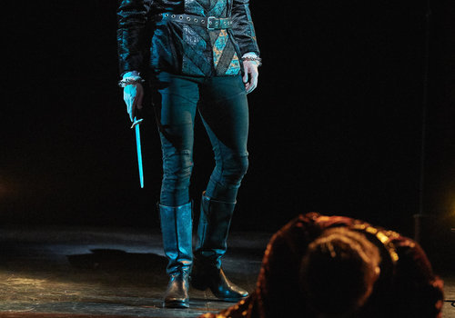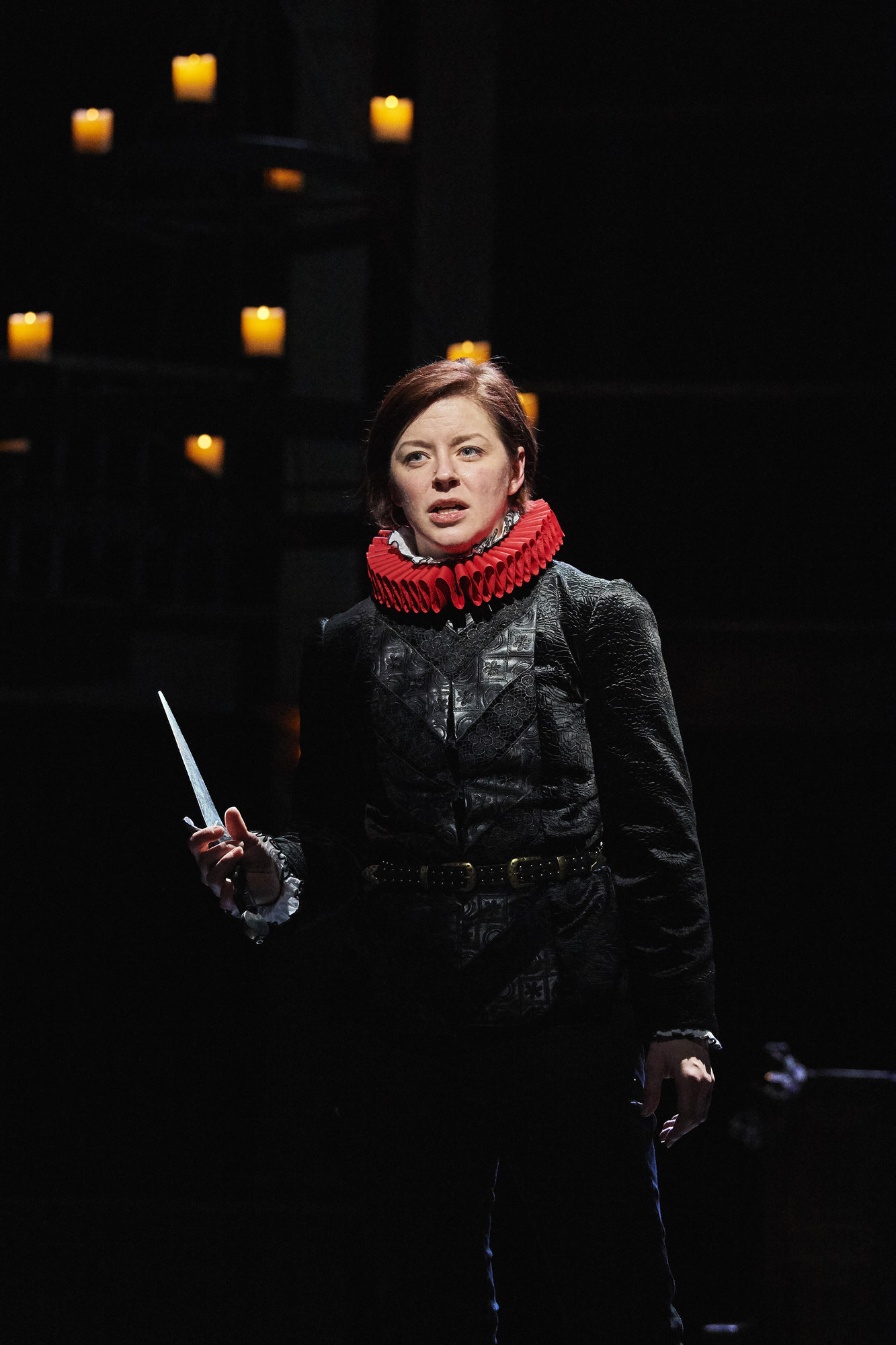 Actor Laura Welsh Berg in the title role of the Great Lakes Theater production of HAMLET at the Hanna Theatre, Playhouse Square which runs through April 15 (Photo by Roger Mastroianni)