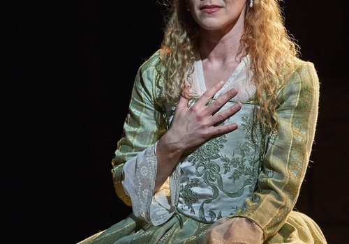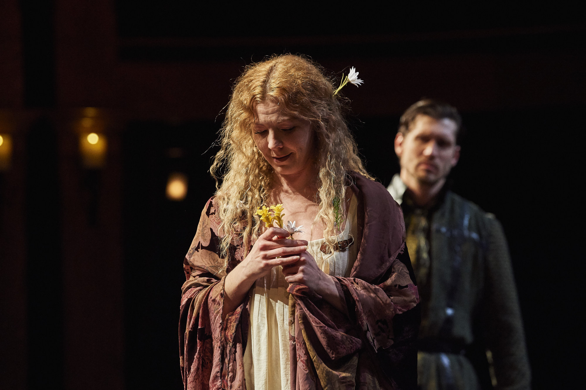 Ophelia, (actor, Erin Partin, left) in the Great Lakes Theater production of HAMLET at the Hanna Theatre, Playhouse Square which runs through April 15 (Photo by Roger Mastroianni)