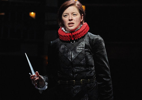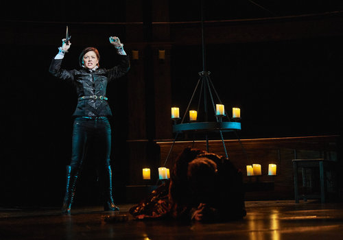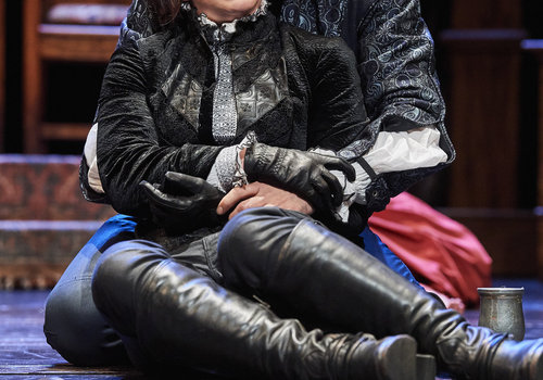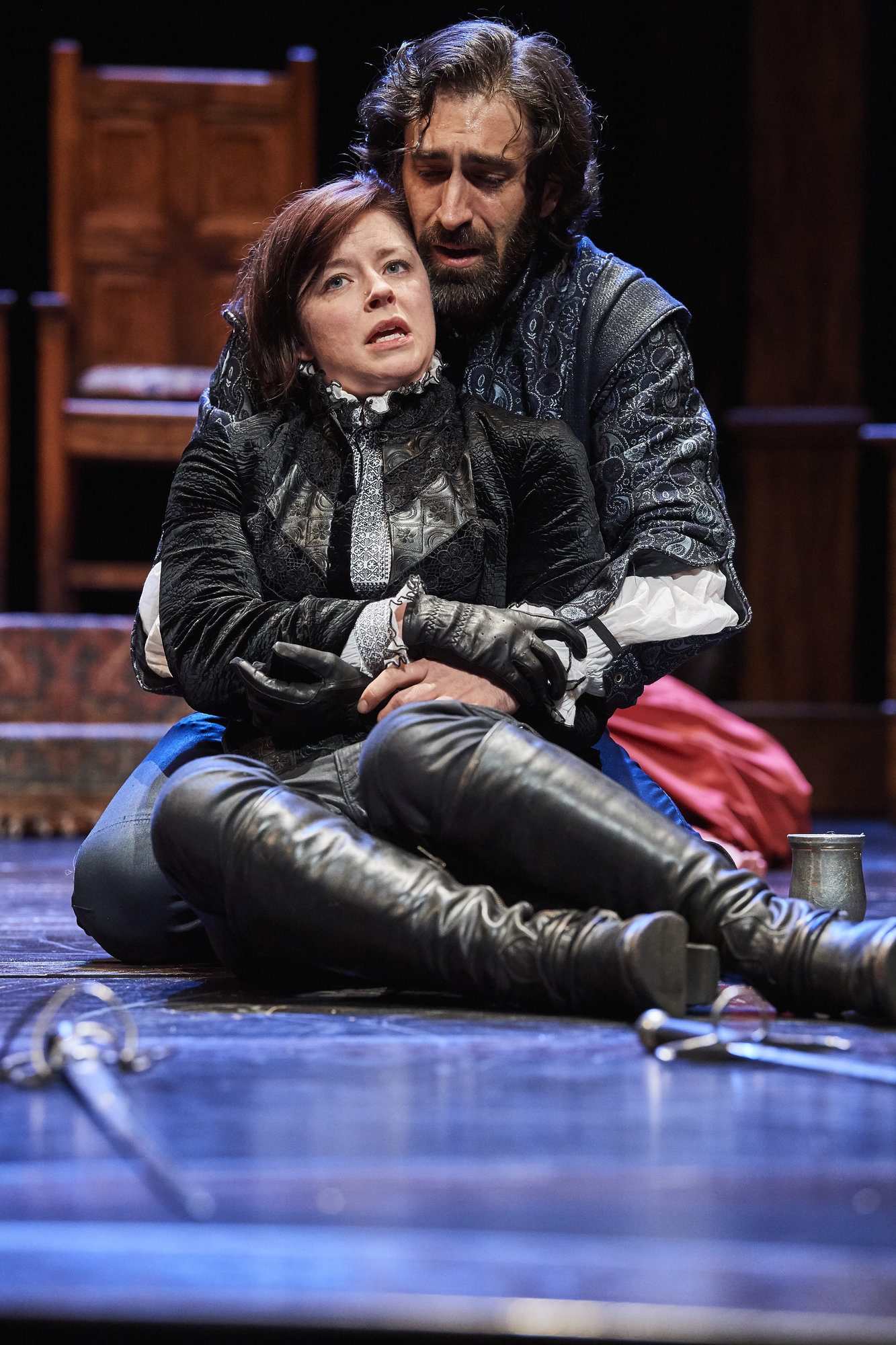 Hamlet (actor, Laura Welsh Berg, below) and Gertrude (actor, Laura Perrotta, above) in the Great Lakes Theater production of HAMLET at the Hanna Theatre, Playhouse Square which runs through April 15 (Photo by Roger Mastroianni)