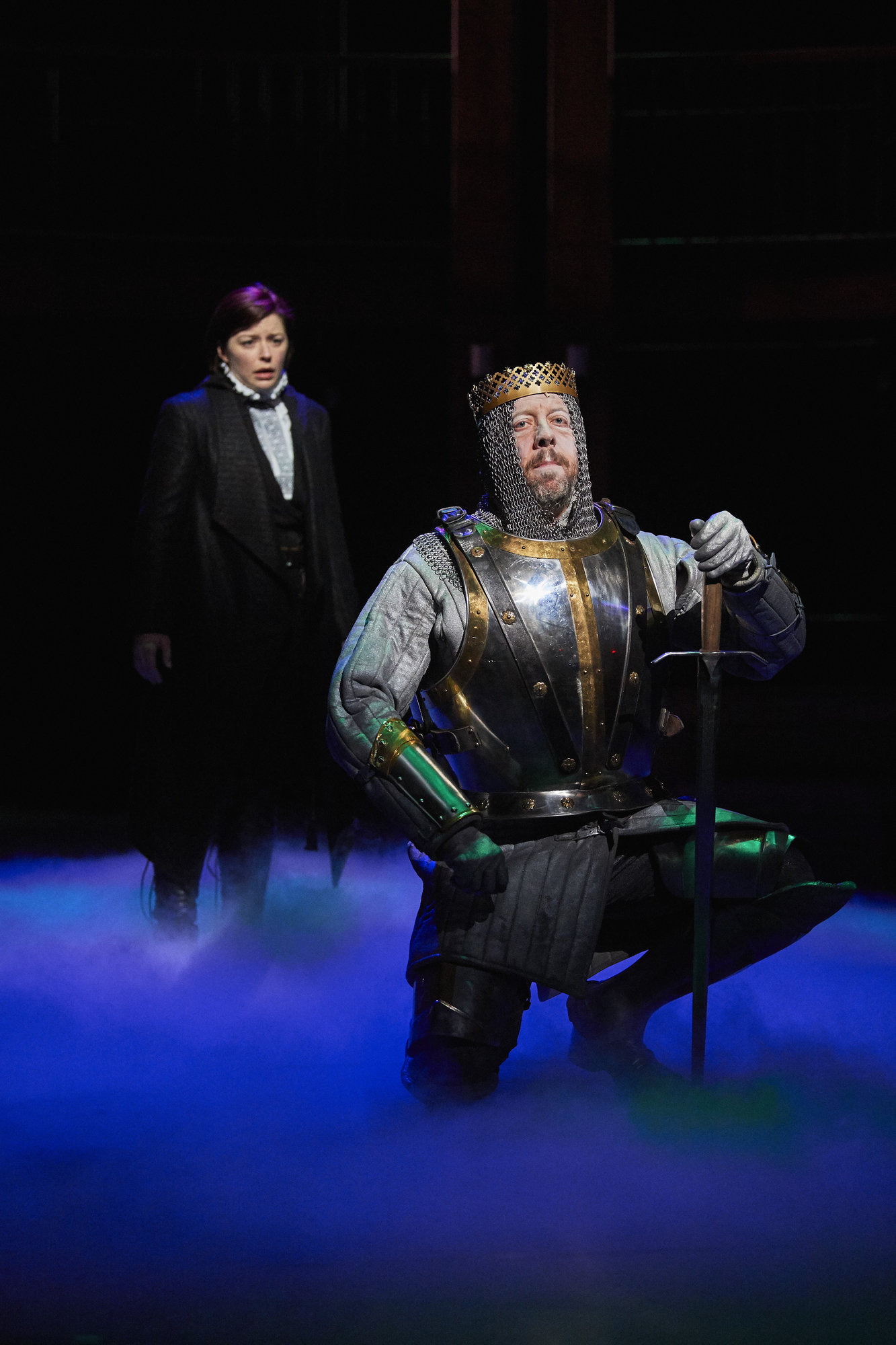 Hamlet (actor, Laura Welsh Berg, left) and the Ghost of Hamlet's Father (actor, Lynn Robert Berg, right) in the Great Lakes Theater production of HAMLET at the Hanna Theatre, Playhouse Square which runs through April 15 (Photo by Roger Mastroianni)