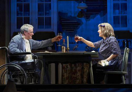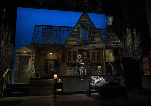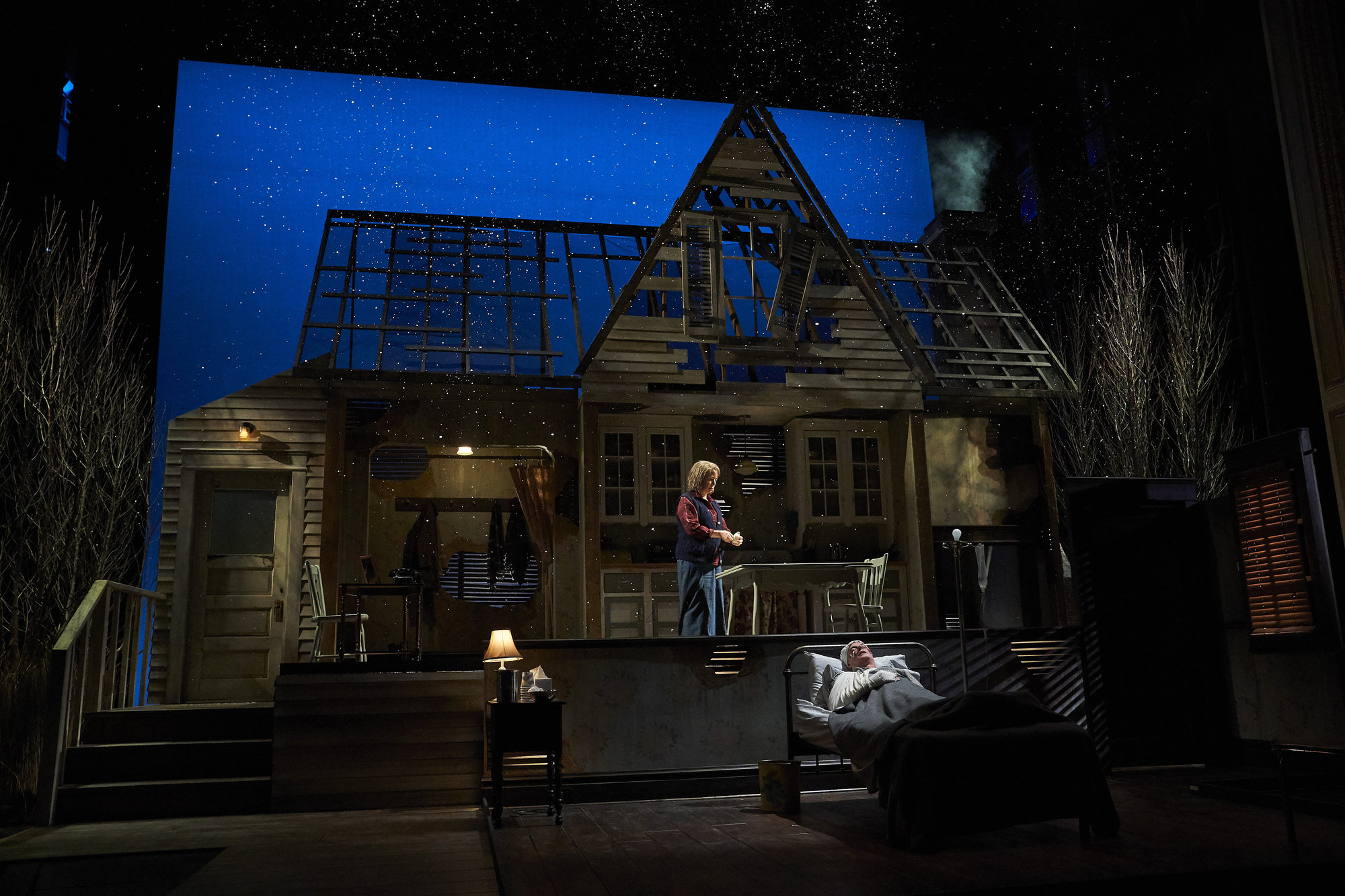 Annie (actor, Kathleen Pirkl Tague*) shares her hopelessness and plans for the future with Paul (actor, Andrew May*) in the Great Lakes Theater production of MISERY at the Hanna Theatre, Playhouse Square which runs through March 11. (Photo by Roger Mastroianni)