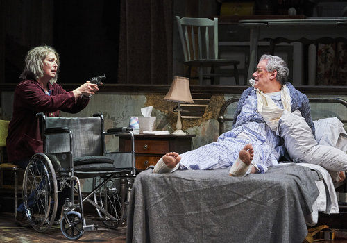 Annie (actor, Kathleen Pirkl Tague*) shares some info with Buster (actor, Nick Steen*) during his second visit in the Great Lakes Theater production of MISERY at the Hanna Theatre, Playhouse Square which runs through March 11. (Photo by Roger Mastroianni)