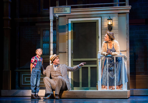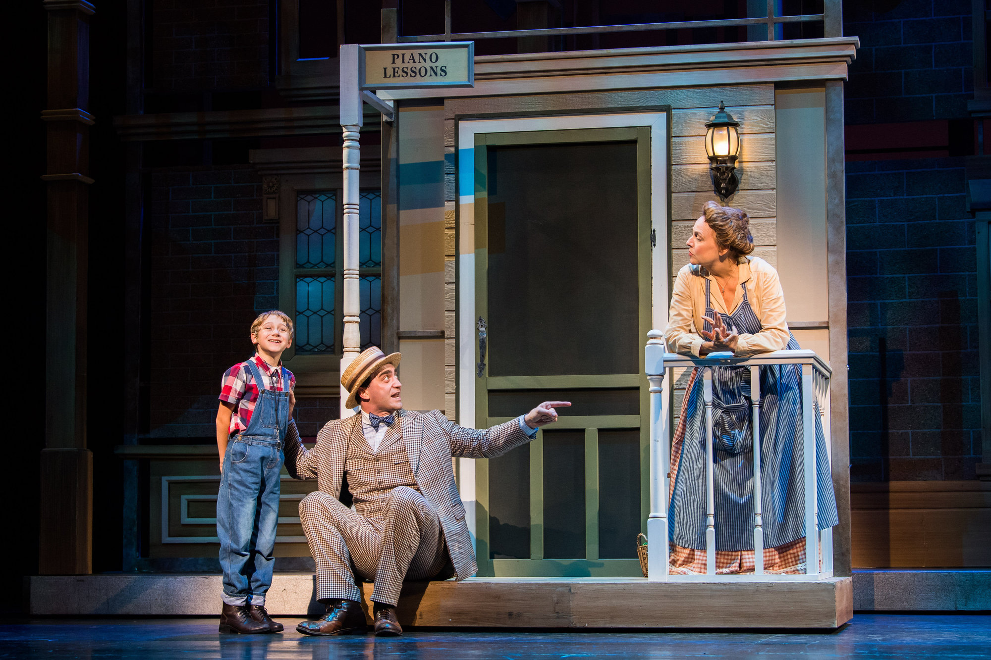 Harold (actor, Alex Syiek*) visits Winthrop (actor, Ian McLaughlin) and Mrs. Paroo (actor, Carole Healey*) in the Great Lakes Theater production THE MUSIC MAN at the Hanna Theatre, Playhouse Square which runs through November 10. (Photo by Ken Blaze)