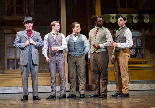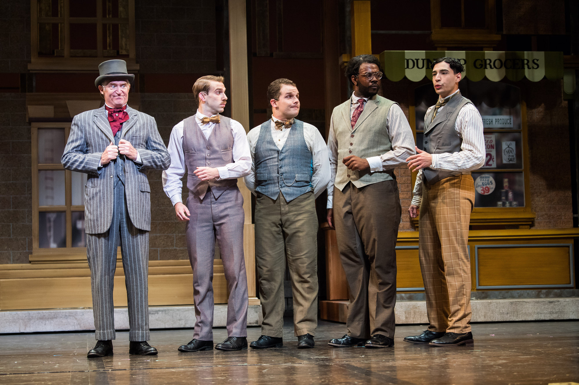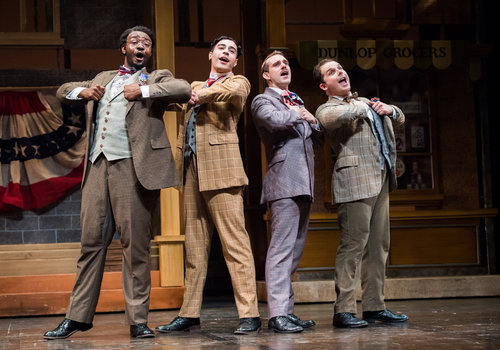 The gentlemen of River City (actors, Elijah Dawson, Enrique Miguel, Mack Sharilla* and Boe Wank*) form the perfect barbershop quartet in the Great Lakes Theater production of THE MUSIC MAN at the Hanna Theatre, Playhouse Square which runs through November 10. (Photo by Ken Blaze)