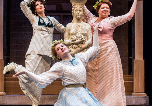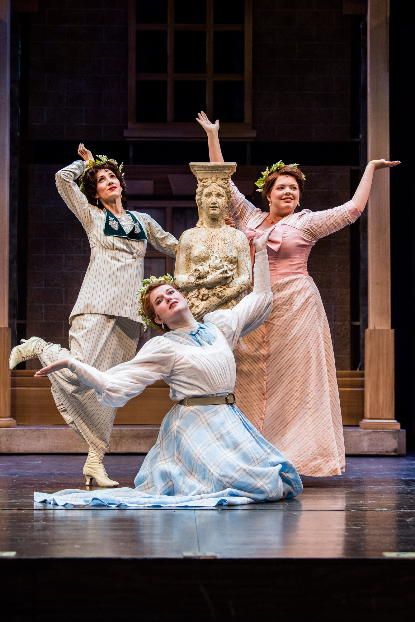 The ladies of River City (actors from l to r, Jodi Dominick*, Erin Neirbuhr and Shelby Griswold*) perform at the Sociable in the Great Lakes Theater production THE MUSIC MAN at the Hanna Theatre, Playhouse Square which runs through November 10. (Photo by Ken Blaze)