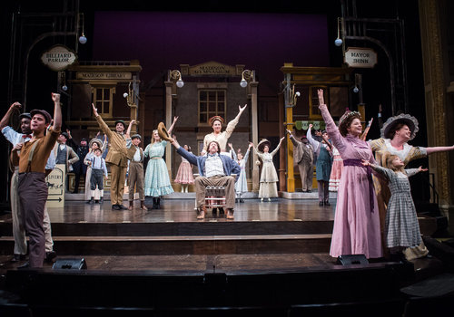 The residents of River City tell us all about “Iowa Stubborn” in the Great Lakes Theater production of THE MUSIC MAN at the Hanna Theatre, Playhouse Square which runs through November 10. Actors featured: Laura Welsh Berg*, Lynn Robert Berg*, Ally Carbonar, Aled Davies*, Elijah Dawson, Jodi Dominick*, Shelby Griswold*, Carole Healey*, Jahir Hipps, Marcus Martin*, Ian McLaughlin, Enrique Miguel, Jessie Cope Miller*, Marlowe Miller, Owen Mills, Andrew Nelin, Erin Niebuhr, Avery Pyo, Brenna Sherman, Mack Sharilla*, David Anthony Smith*, Sun-Hee Smith, Claire Soulier, August Sumlin, Boe Wank* and Chase Christopher Zadd. (Photo by Ken Blaze)
