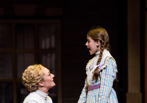 Marian Paroo (actor, Jillian Kates*) has a tender moment with her piano student, Amaryllis (actor, Brenna Sherman) in the Great Lakes Theater production THE MUSIC MAN at the Hanna Theatre, Playhouse Square which runs through November 10. (Photo by Ken Blaze)