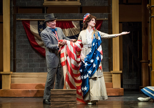 Mayor Shinn (actor, David Anthony Smith*) and his wife, Eulalie Shinn (actor, Jodi Dominick*) open the 4th of July Festivities in River City in the Great Lakes Theater production THE MUSIC MAN at the Hanna Theatre, Playhouse Square which runs through November 10. (Photo by Ken Blaze)