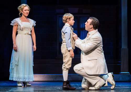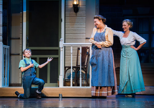 Winthrop (actor, Ian McLaughlin) sings the song Harold taught him to his mother (actor, Carole Healey*) and sister (actor, Jillian Kates*) in the Great Lakes Theater production THE MUSIC MAN at the Hanna Theatre, Playhouse Square which runs through November 10. (Photo by Ken Blaze)
