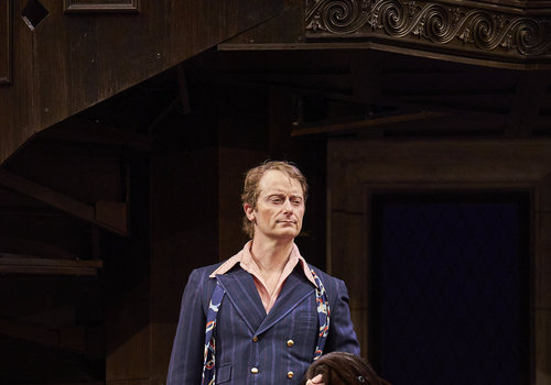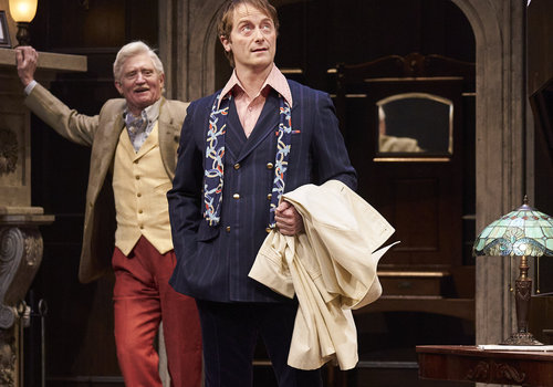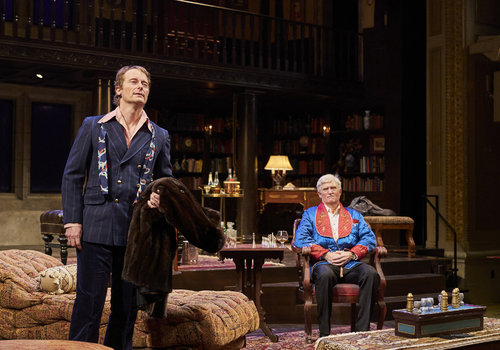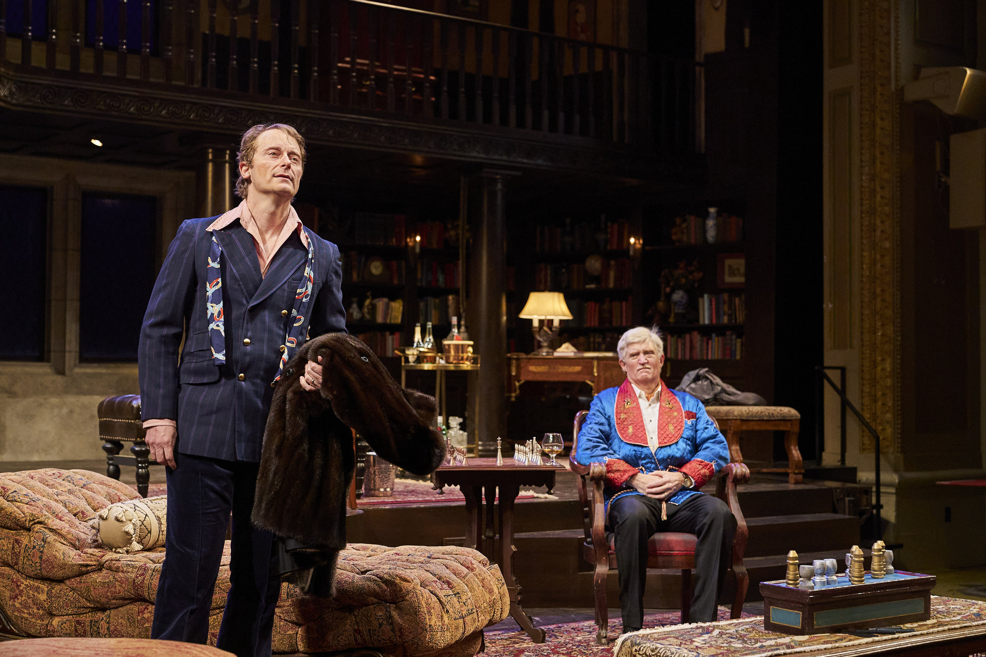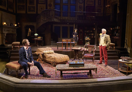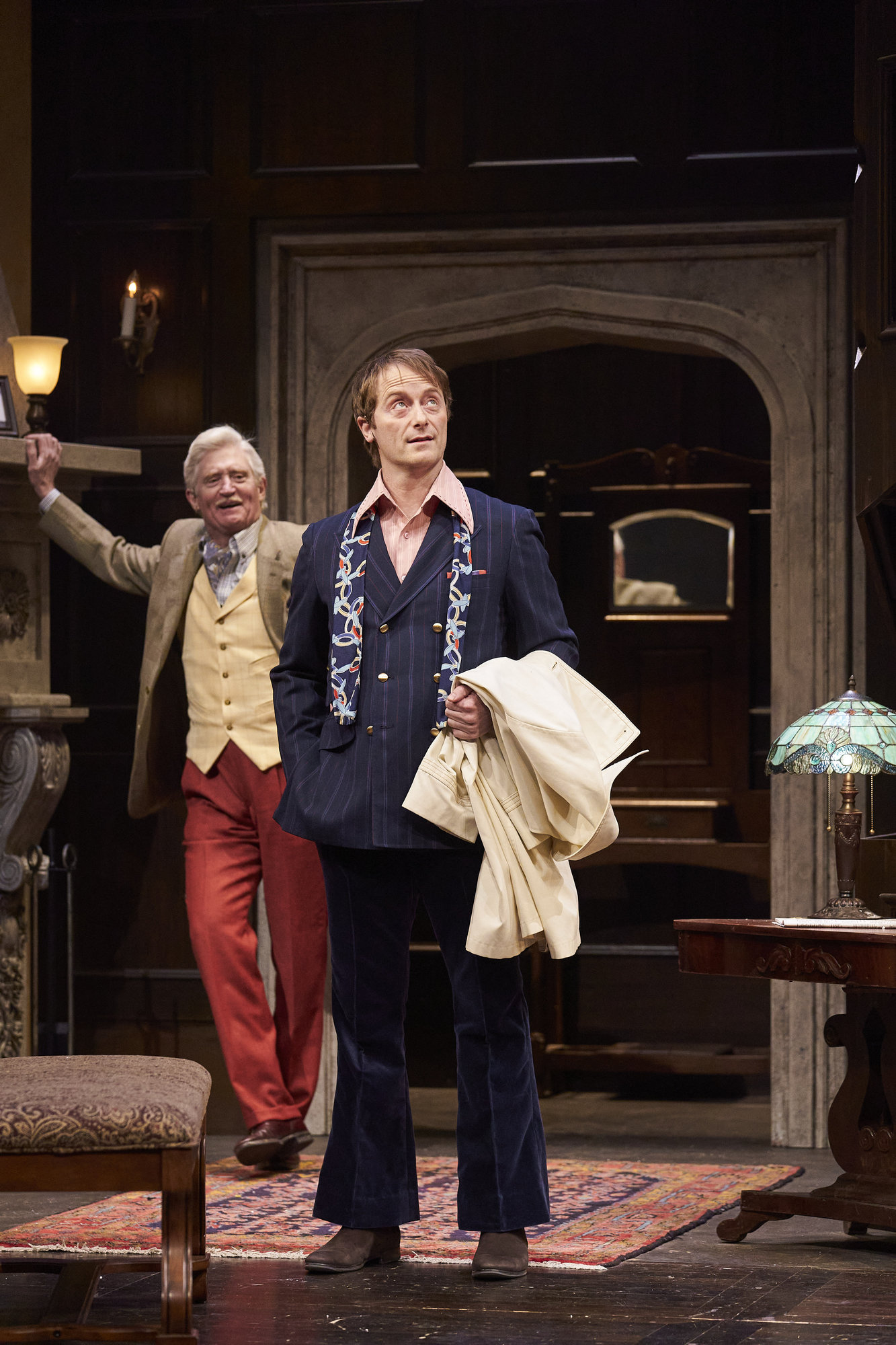Milo Tindle (actor, Jeffrey C. Hawkins*) arrives at the manor of Andrew Wyke (actor, David Anthony Smith*) in the Great Lakes Theater production of SLEUTH onstage at the Hanna Theatre, Playhouse Square. The production runs through March 8. (Photography by Roger Mastroianni)