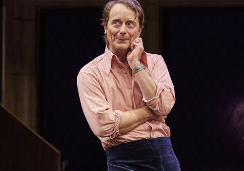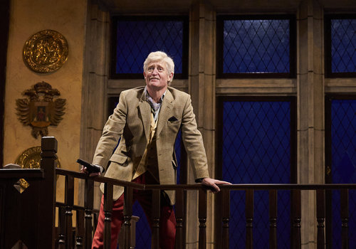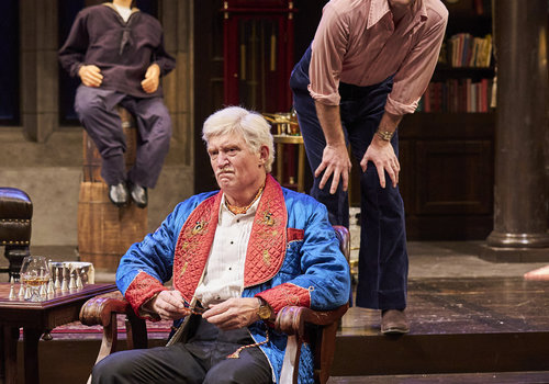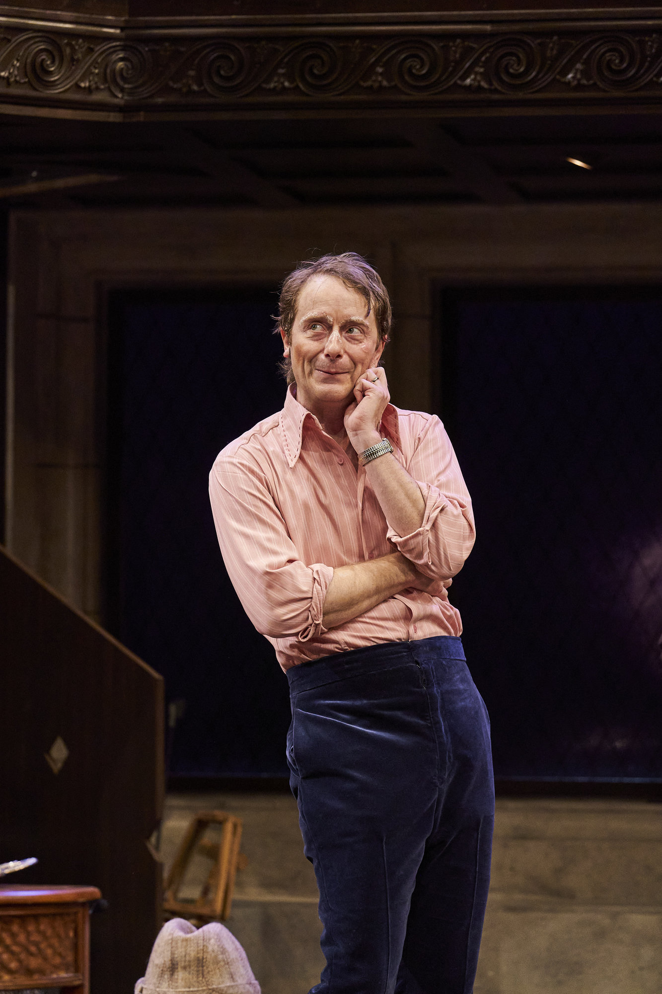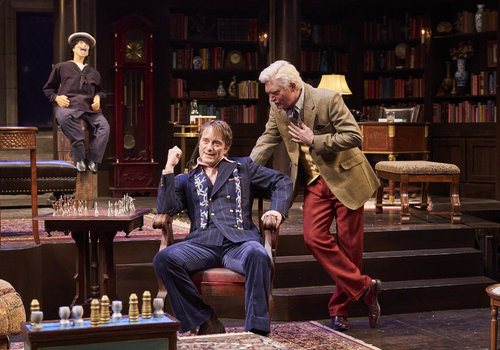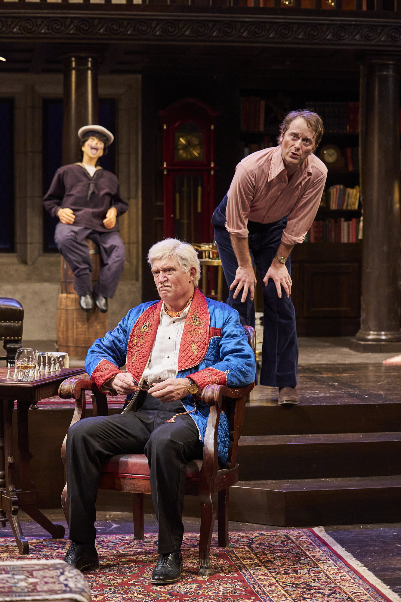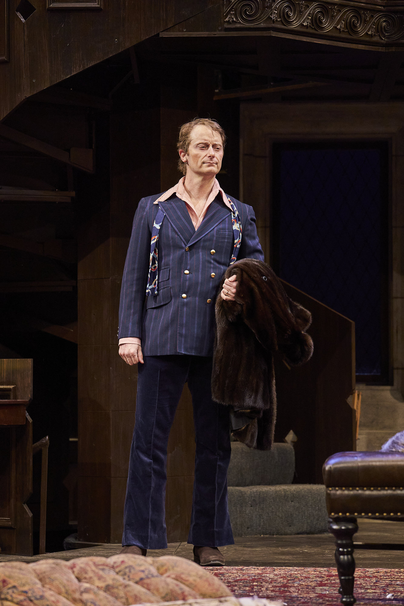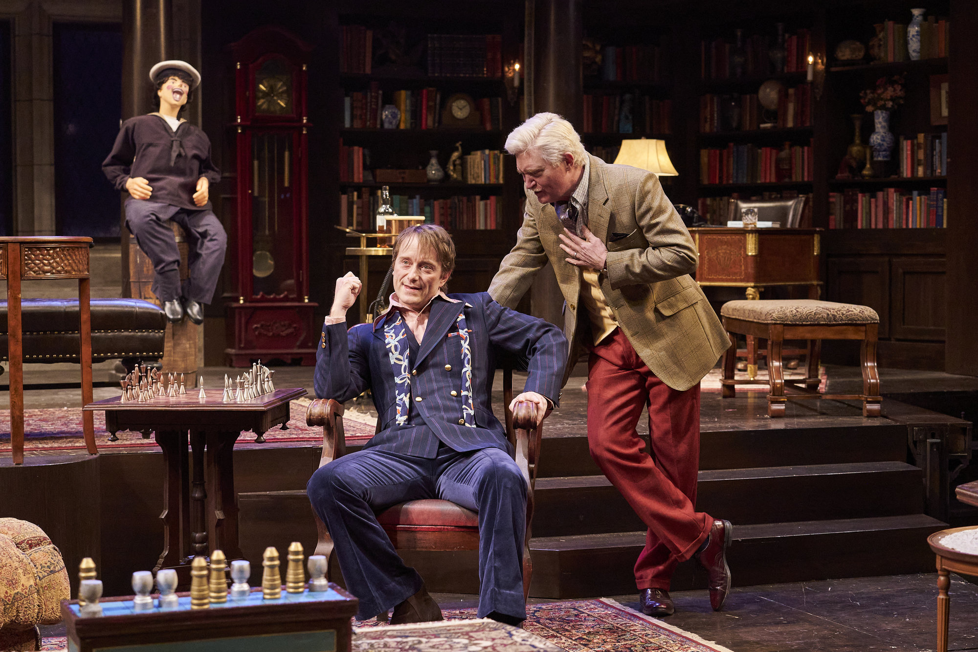 Milo (actor, Jeffrey C. Hawkins*) shares a story in the Great Lakes Theater production of SLEUTH onstage at the Hanna Theatre, Playhouse Square. The production runs through March 8. (Photography by Roger Mastroianni)