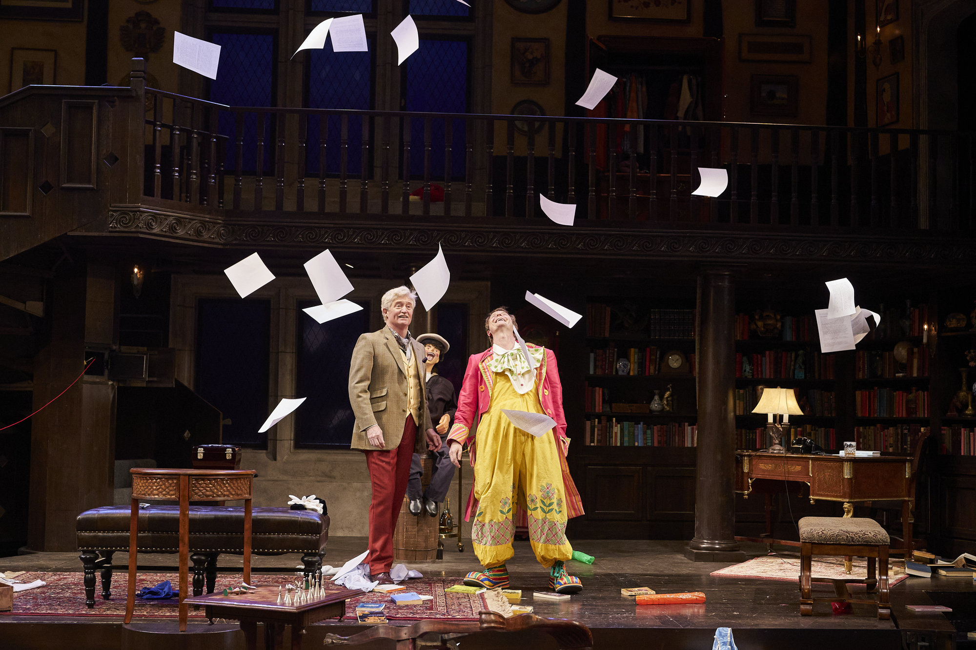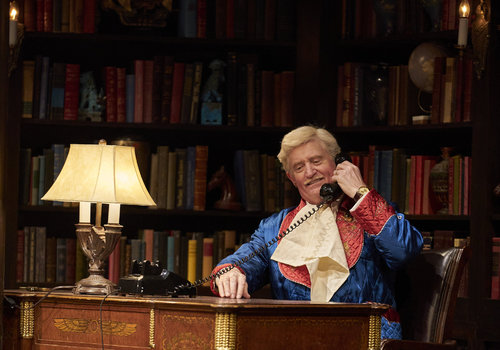 Milo (actor, Jeffrey C. Hawkins*) gathers his things in the Great Lakes Theater production of SLEUTH onstage at the Hanna Theatre, Playhouse Square. The production runs through March 8. (Photography by Roger Mastroianni)