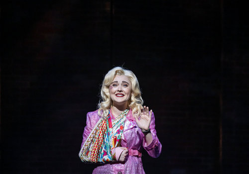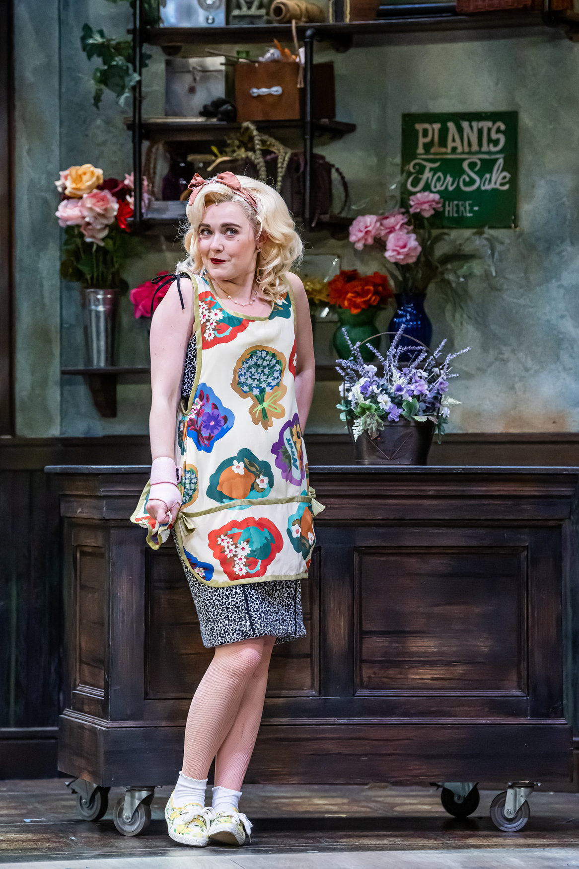 Audrey (actor, Sara Masterson*) preps the shop for new customers in the Great Lakes Theater production of LITTLE SHOP OF HORRORS at the Hanna Theatre, Playhouse Square running through October 9. (Photo by Ken Blaze)