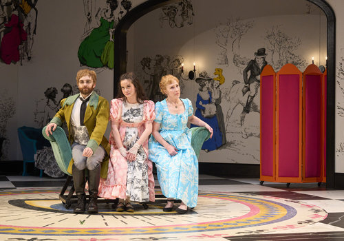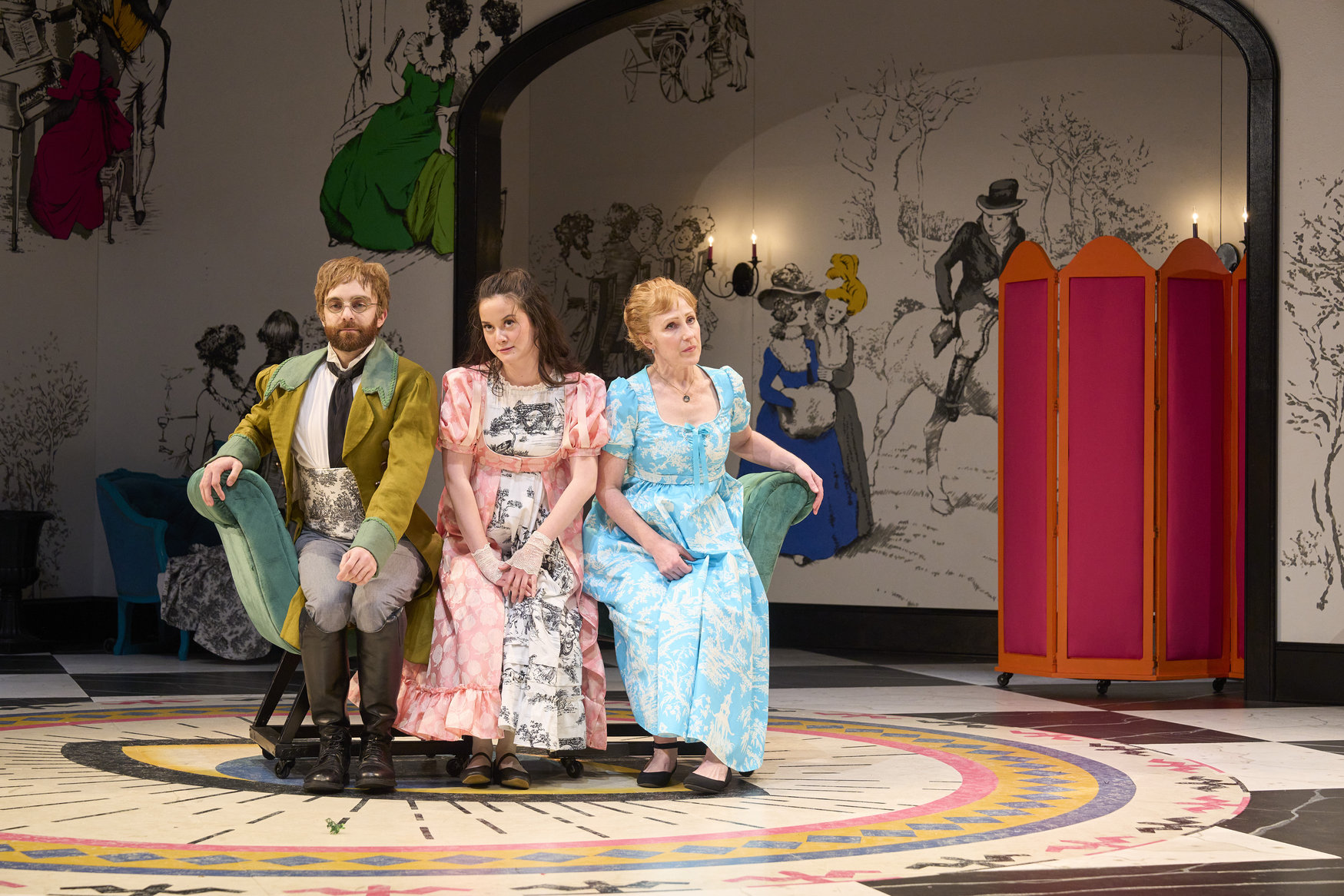 Edward Ferrars (actor, Joe Wegner*), Lucy Steele (actor, Hanako Walrath*) and Elinor (actor, Maggie Kettering*) share a tense exchange in the Great Lakes Theater production SENSE AND SENSIBILITY at the Hanna Theatre, Playhouse Square, which runs through March 5. (Photo by Roger Mastroianni)