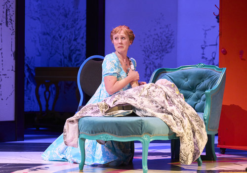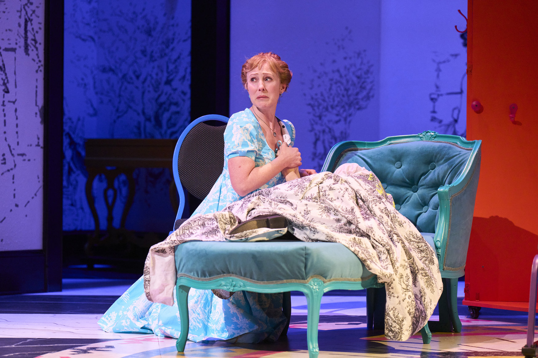 Elinor (actor, Maggie Kettering*) despairs over her ill sister in the Great Lakes Theater production SENSE AND SENSIBILITY at the Hanna Theatre, Playhouse Square, which runs through March 5. (Photo by Roger Mastroianni)