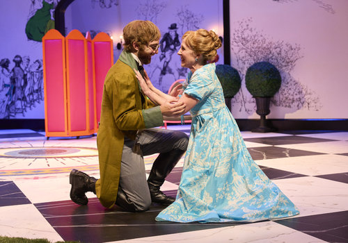 Elinor (actor, Maggie Kettering*) and Edward Ferrars (actor, Joe Wegner*) finally share their affection for one another in the Great Lakes Theater production of SENSE AND SENSIBILITY at the Hanna Theatre, Playhouse Square, which runs through March 5. (Photo by Roger Mastroianni)