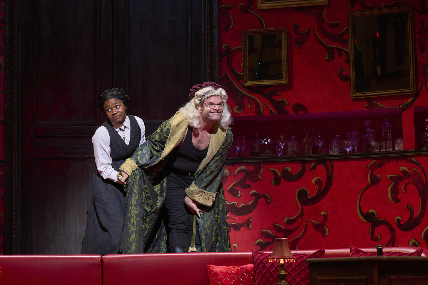 Princess Mary (actor, Camille Brooks*) and Prince Bólkonsky (actor, Cole Burden*) are introduced as Andrey's family in the Great Lakes Theater production of NATASHA, PIERRE & THE GREAT COMET OF 1812 at the Hanna Theatre, Playhouse Square running through October 8. (Photo by Roger Mastroianni)