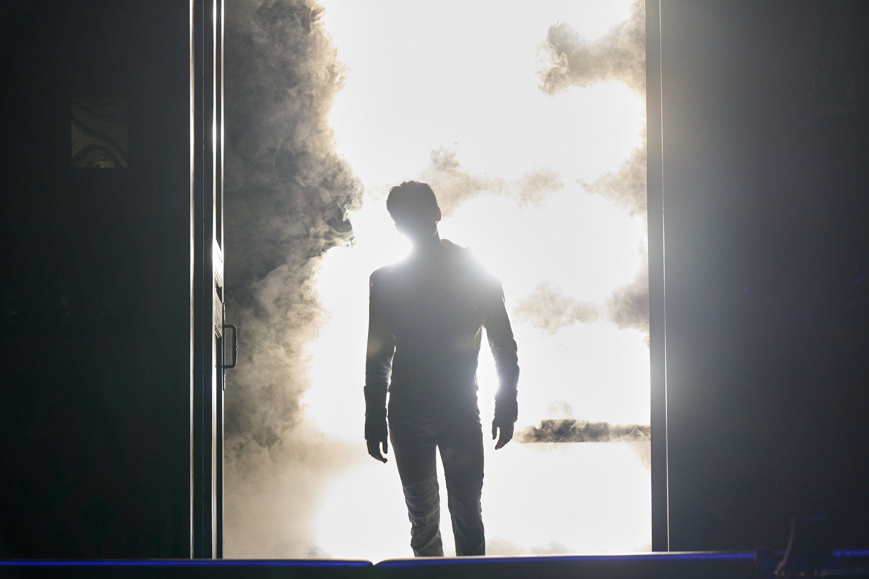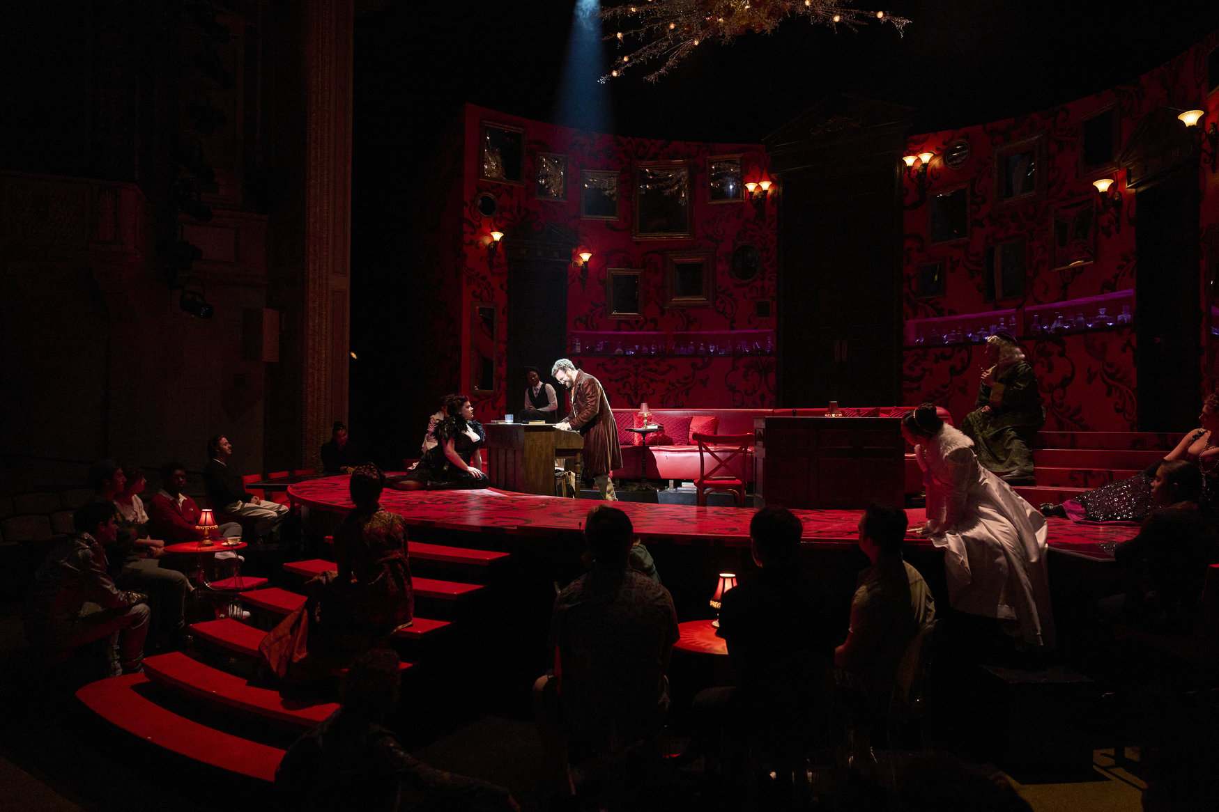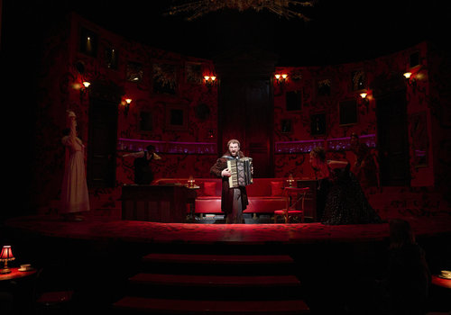 Anatole (actor, Chris McCarrell*) makes his entrance in the Great Lakes Theater production of NATASHA, PIERRE & THE GREAT COMET OF 1812 at the Hanna Theatre, Playhouse Square running through October 8. (Photo by Roger Mastroianni)