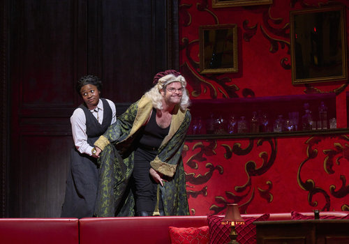 Marya (actor, Jodi Dominick*) admonishes Natasha (actor, Jessi Kirtley*) for the ill-conceived, foiled elopement as Sonya (actor, Alexa Lopez*) looks on in the Great Lakes Theater production NATASHA, PIERRE & THE GREAT COMET OF 1812 at the Hanna Theatre, Playhouse Square running through October 8. (Photo by Roger Mastroianni)