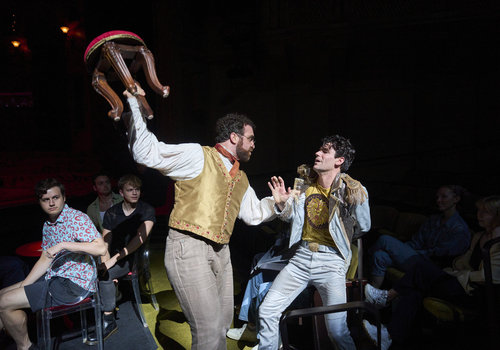 Pierre (actor, Alex Syiek*) confronts Anatole (actor, Chris McCarrell*) in the Great Lakes Theater production of NATASHA, PIERRE & THE GREAT COMET OF 1812 at the Hanna Theatre, Playhouse Square, running through October 8. (Photo by Roger Mastroianni)