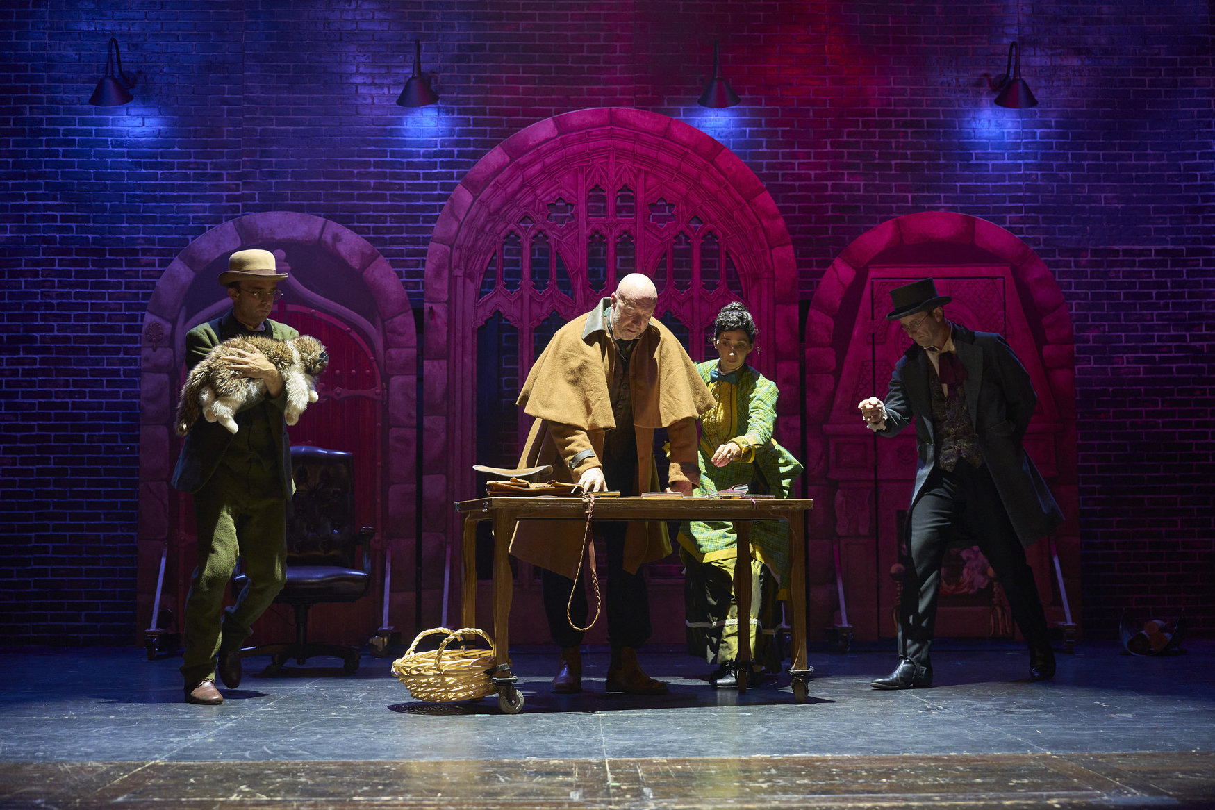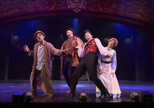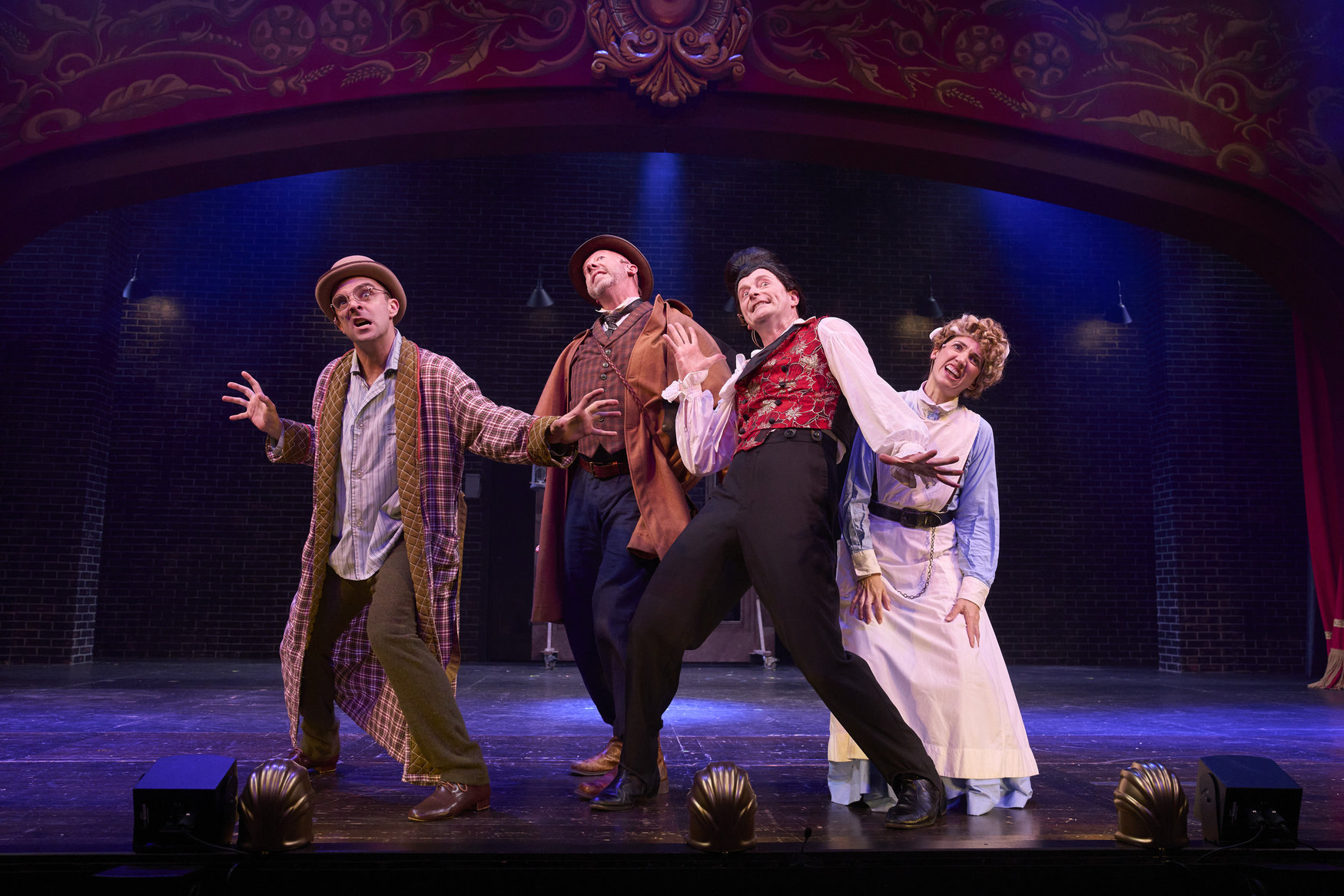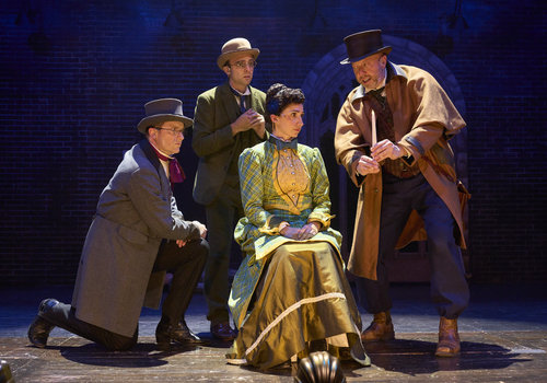 Harker (actor, Joe Wegner*), Van Helsing (actor, Lynn Robert Berg*), Mina (actor, Jodi Dominick*) and Dr. Seward (actor, Jeffery C. Hawkins*) piece together the clues in the Great Lakes Theater production of Dracula: The Bloody Truth at the Hanna Theatre, Playhouse Square, running through November 5. (Photo by Roger Mastroianni)