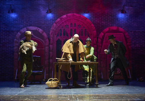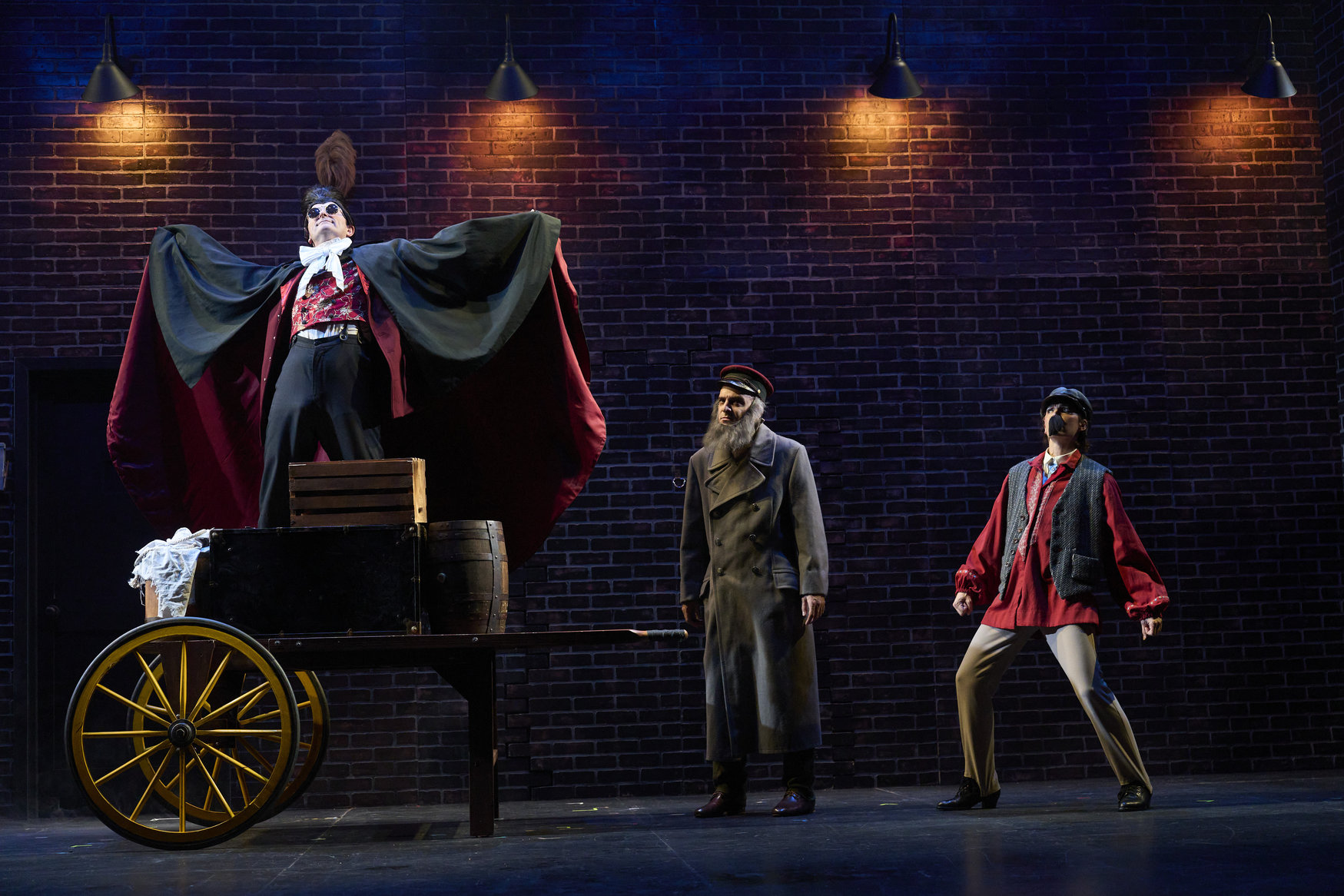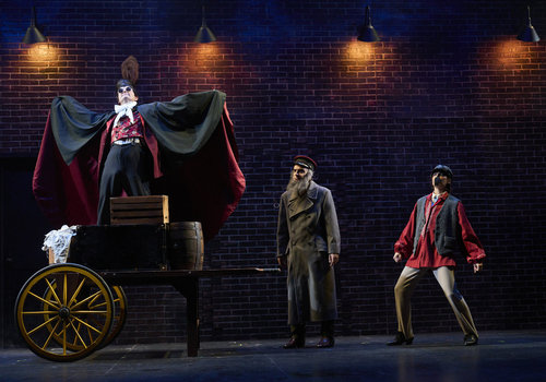 Dracula (actor, Jeffrey C. Hawkins*) addresses a ship's captain (actor, Joe Wegner*) and a dock worker (actor, Jodi Dominick*) in the Great Lakes Theater production of Dracula: The Bloody Truth at the Hanna Theatre, Playhouse Square running through November 5. (Photo by Roger Mastroianni)