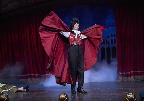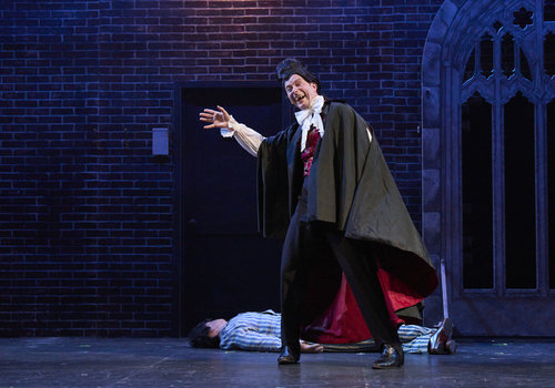 Dracula (actor, Jeffrey C. Hawkins*) bares his fangs in the Great Lakes Theater production of Dracula: The Bloody Truth at the Hanna Theatre, Playhouse Square, running through November 5. (Photo by Roger Mastroianni)